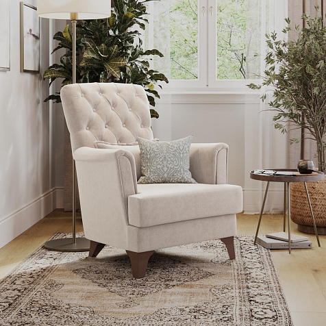 Кресло «Холли» подойдёт тем, кто ищет классику в современном видении. С помощью кресла можно организовать уютный уголок для чтения. А если поставить 2 и более кресел рядом, то получится идеальная зона отдыха в квартире или загородном доме.