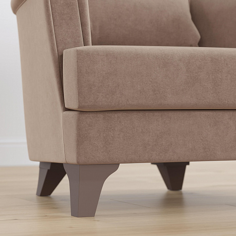 Обивка из велюра. Визуальная схожесть с замшевой текстурой смотрится элегантно. Бархатистая ткань приятная на ощупь, отличается высокой прочностью и устойчивостью к истиранию.