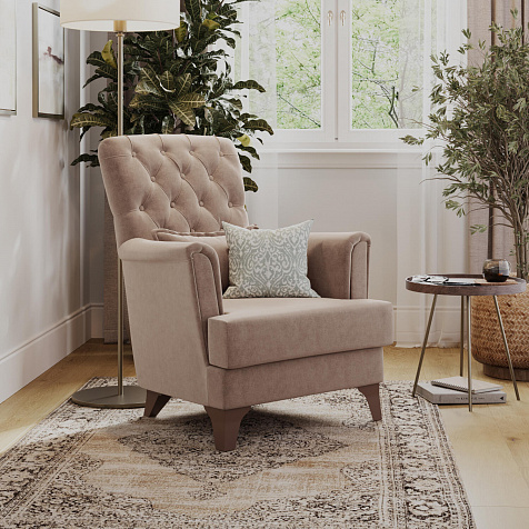 Кресло «Холли» подойдёт тем, кто ищет классику в современном видении. С помощью кресла можно организовать уютный уголок для чтения. А если поставить 2 и более кресел рядом, то получится идеальная зона отдыха в квартире или загородном доме.