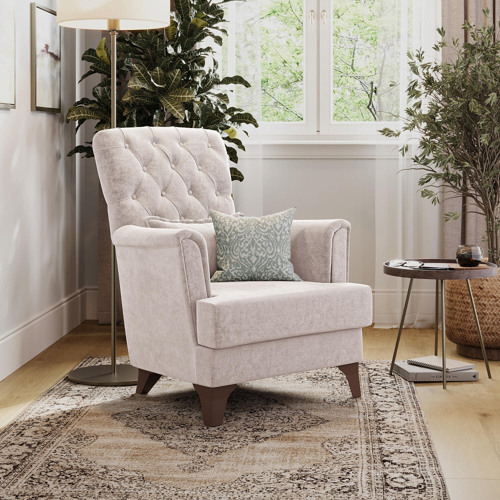 Кресло «Холли» подойдёт тем, кто ищет классику в современном видении. С помощью кресла можно организовать уютный уголок для чтения. А если поставить 2 и более кресел рядом, то получится идеальная зона отдыха в квартире или загородном доме.