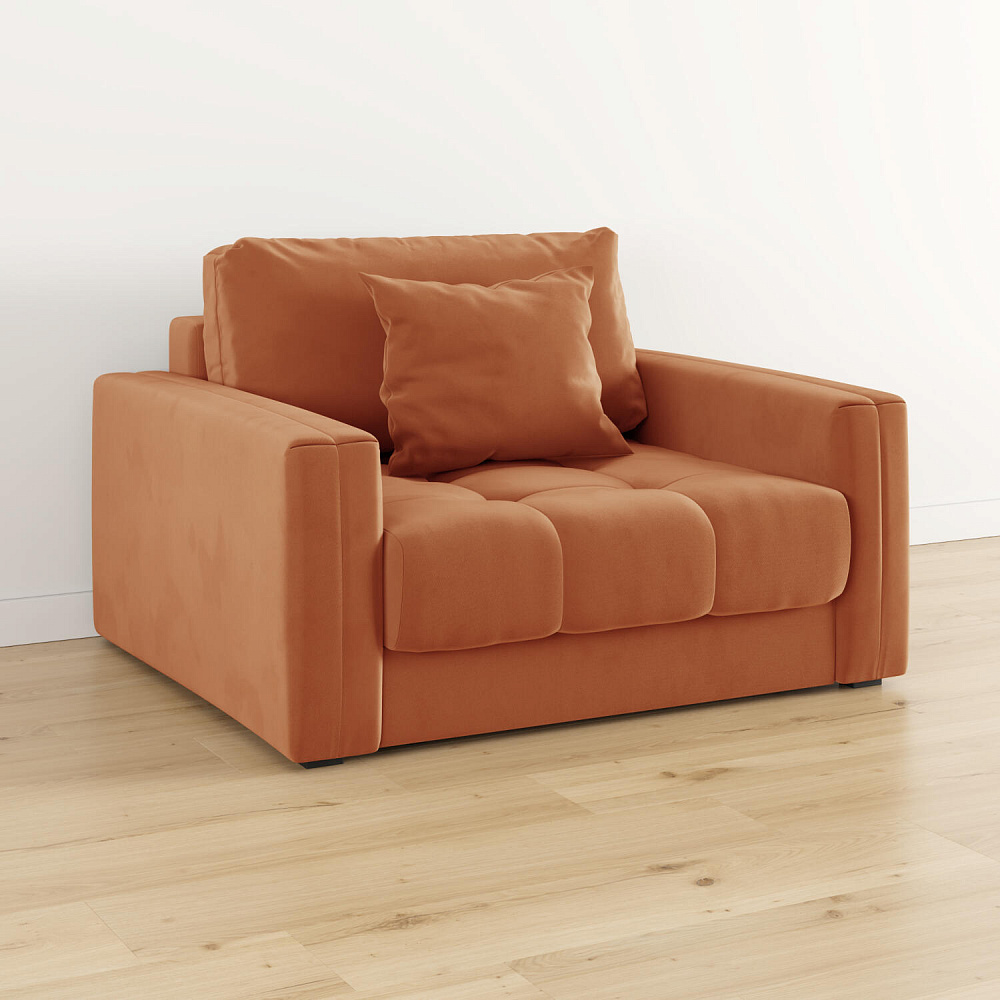 Кресло-кровать «Дензел» — лучшее сочетание компактности и функциональности в современном стиле. Кресло обладает глубокой посадкой, а подушки позволяют создать удобное место для отдыха. Спинка модели выполнена в обивочной ткани, что позволяет использовать кресло-кровать для зонирования комнаты.