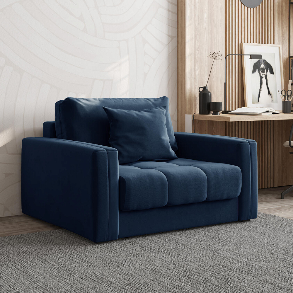Кресло-кровать «Дензел» — лучшее сочетание компактности и функциональности в современном стиле. Кресло обладает глубокой посадкой, а подушки позволяют создать удобное место для отдыха. Спинка модели выполнена в обивочной ткани, что позволяет использовать кресло-кровать для зонирования комнаты.