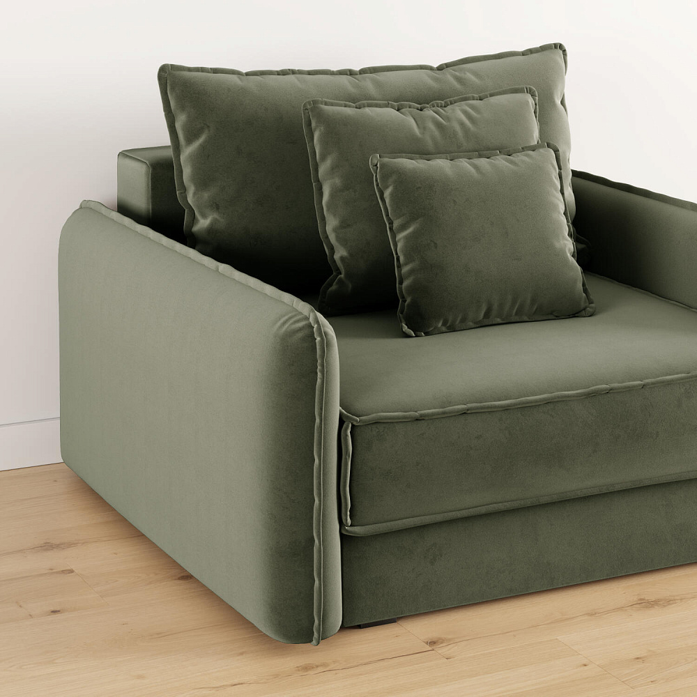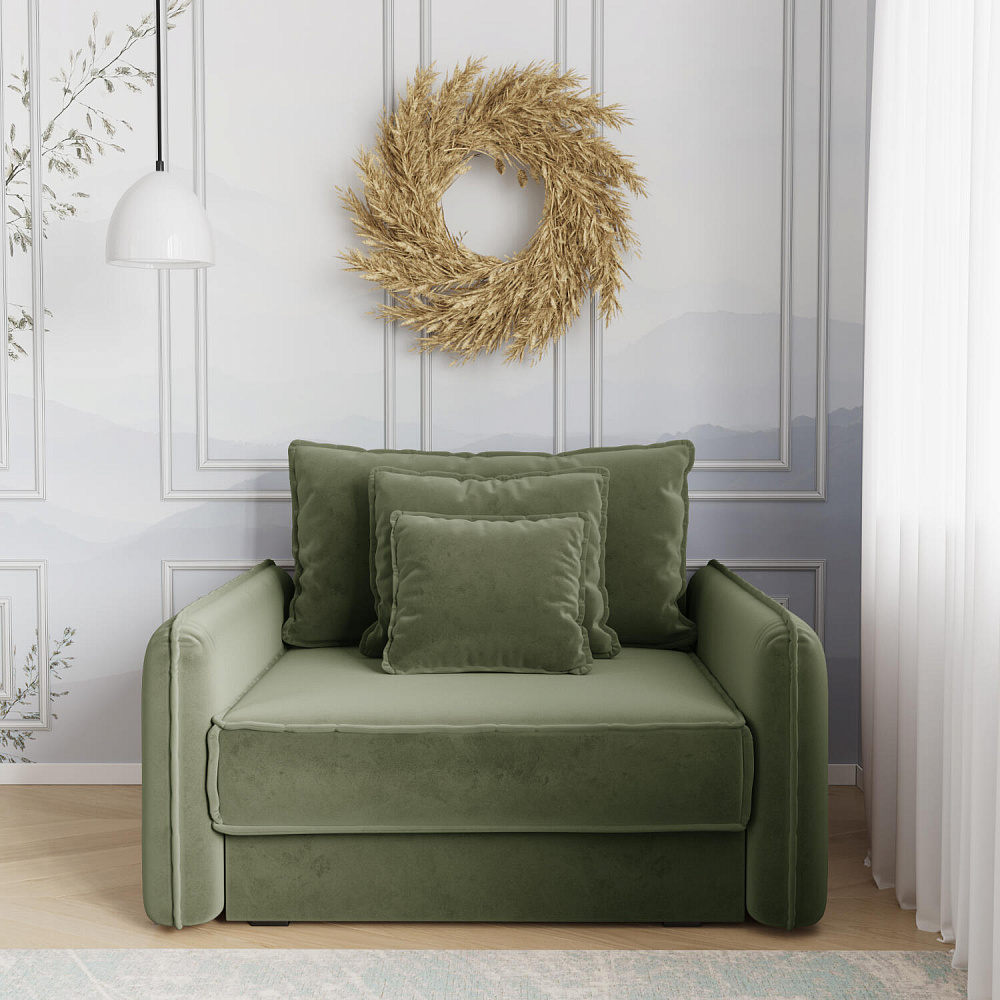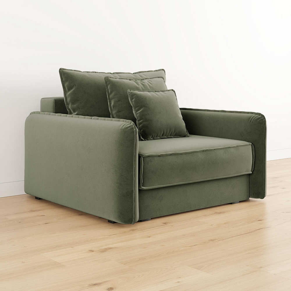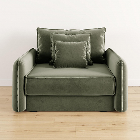 Кресло-кровать «Кросби» — это сочетание комфорта, уюта и компактности в современном стиле. Кресло обладает глубокой посадкой, а приспинная и декоративные подушки разных размеров позволяют создать удобное место для отдыха. Элегантно выглядят узкие мягкие подлокотники с объёмным кантом.