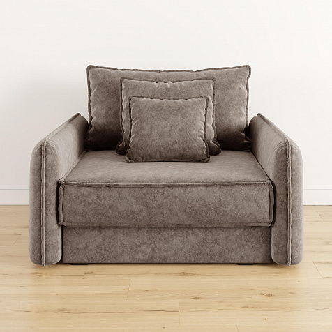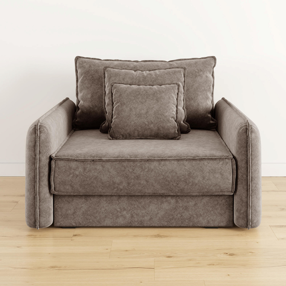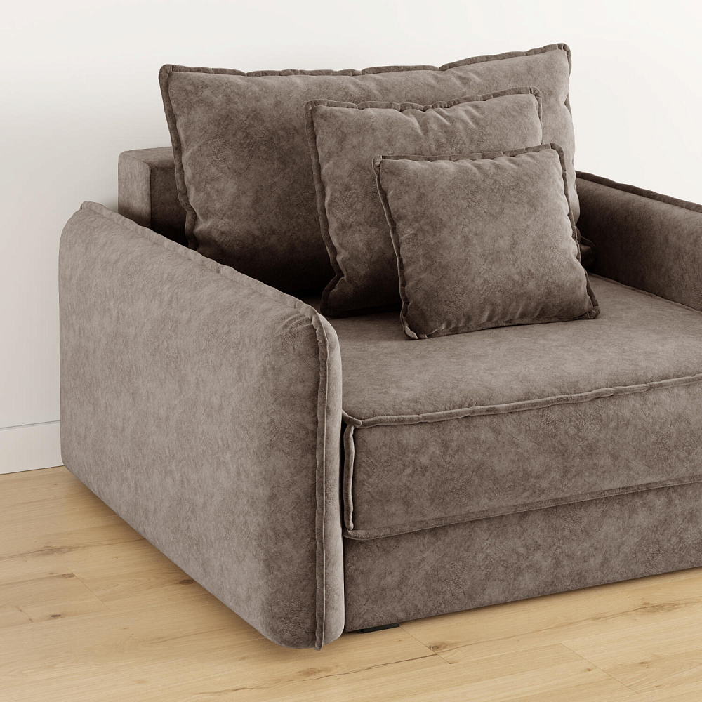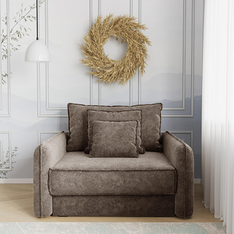 Кресло-кровать «Кросби» — это сочетание комфорта, уюта и компактности в современном стиле. Кресло обладает глубокой посадкой, а приспинная и декоративные подушки разных размеров позволяют создать удобное место для отдыха. Элегантно выглядят узкие мягкие подлокотники с объёмным кантом.