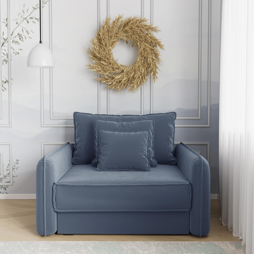 Кресло-кровать «Кросби» — это сочетание комфорта, уюта и компактности в современном стиле. Кресло обладает глубокой посадкой, а приспинная и декоративные подушки разных размеров позволяют создать удобное место для отдыха. Элегантно выглядят узкие мягкие подлокотники с объёмным кантом.