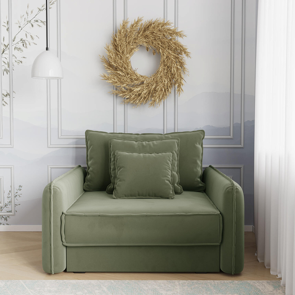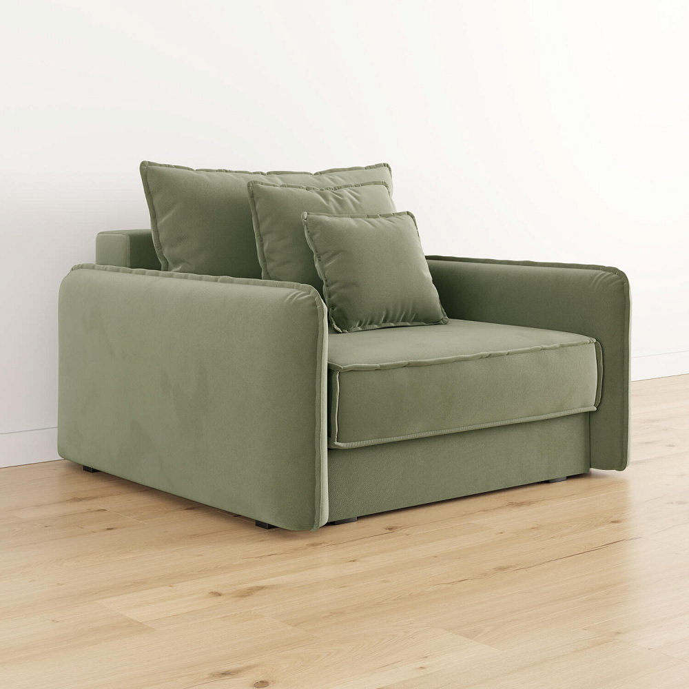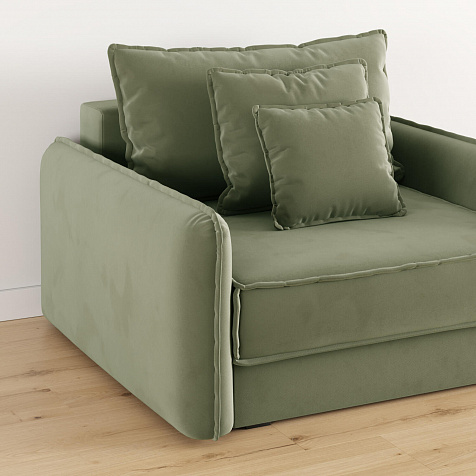 Кресло-кровать «Кросби» — это сочетание комфорта, уюта и компактности в современном стиле. Кресло обладает глубокой посадкой, а приспинная и декоративные подушки разных размеров позволяют создать удобное место для отдыха. Элегантно выглядят узкие мягкие подлокотники с объёмным кантом.