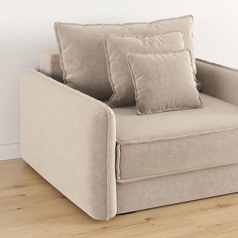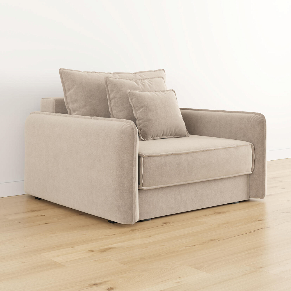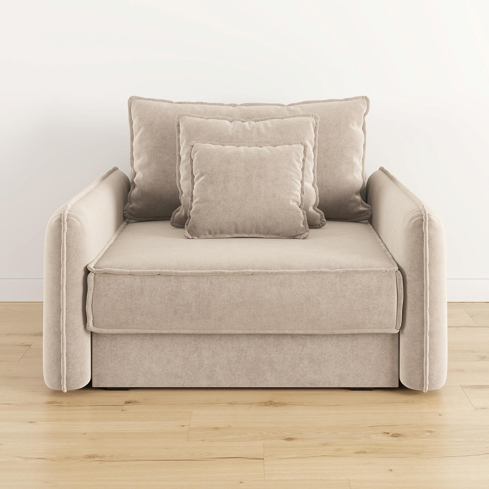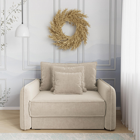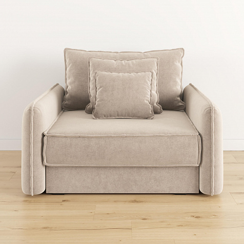 Кресло-кровать «Кросби» — это сочетание комфорта, уюта и компактности в современном стиле. Кресло обладает глубокой посадкой, а приспинная и декоративные подушки разных размеров позволяют создать удобное место для отдыха. Элегантно выглядят узкие мягкие подлокотники с объёмным кантом.
