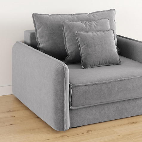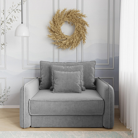 Кресло-кровать «Кросби» — это сочетание комфорта, уюта и компактности в современном стиле. Кресло обладает глубокой посадкой, а приспинная и декоративные подушки разных размеров позволяют создать удобное место для отдыха. Элегантно выглядят узкие мягкие подлокотники с объёмным кантом.