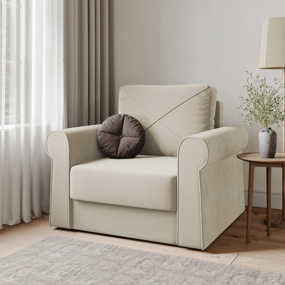 Кресло «Имола» — идеальное сочетание надёжности, простоты и комфорта, подходит для ежедневного использования. Универсальный дизайн позволяет гармонично вписать модель в любое современное помещение, независимо от его стилистической направленности. Диагональные строчки на приспинной подушке создают завершённый образ, придавая модели геометричности. Кресло сочетает в себе полноценное односпальное место, которое при этом экономит пространство за счет особенности раскладного механизма.