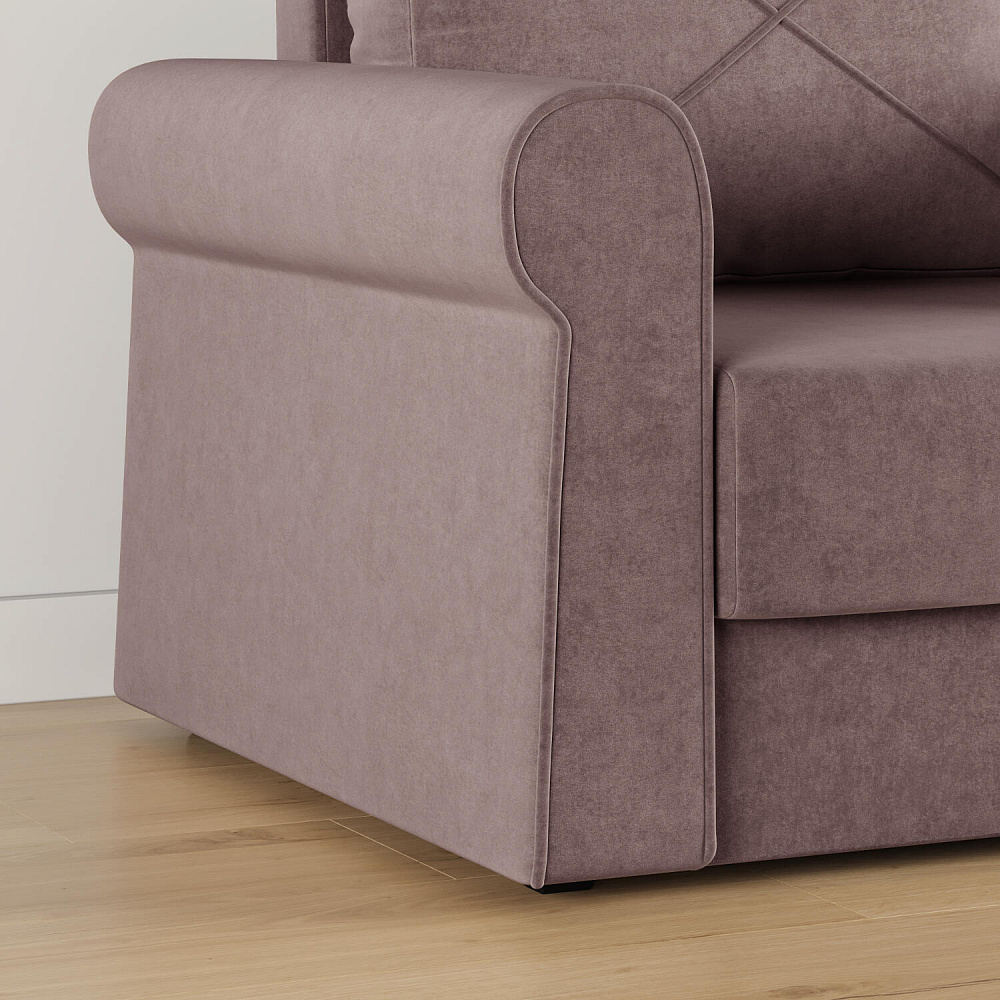 Обивка из велюра. Визуальная схожесть с замшевой текстурой смотрится элегантно. Ткань приятна на ощупь, устойчива к истиранию и механическим повреждениям.