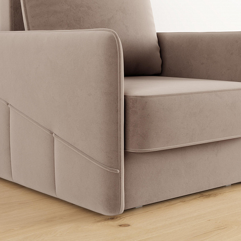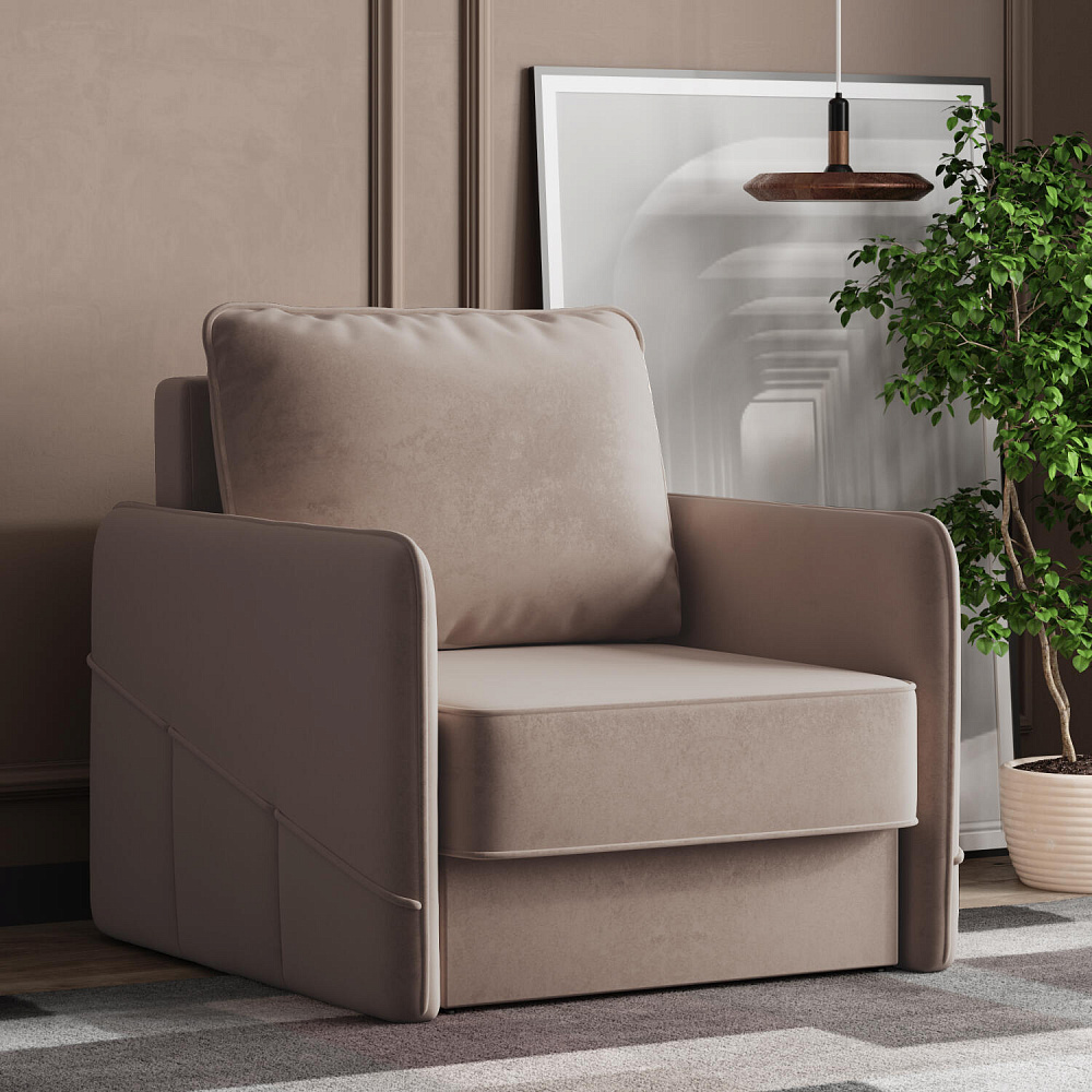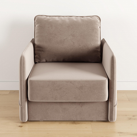 Стильное кресло «Симпл» с узкими подлокотниками станет ярким акцентом в современной гостиной. Кант из мягкого велюра придаёт дизайну завершённый вид, подчёркивает мягкую геометричность. В комплектацию входит большая задняя подушка, позволяющая корректировать глубину посадки. Механизм трансформации «Еврокнижка» обеспечит комфортное, ровное спальное место.
