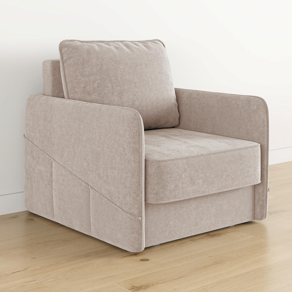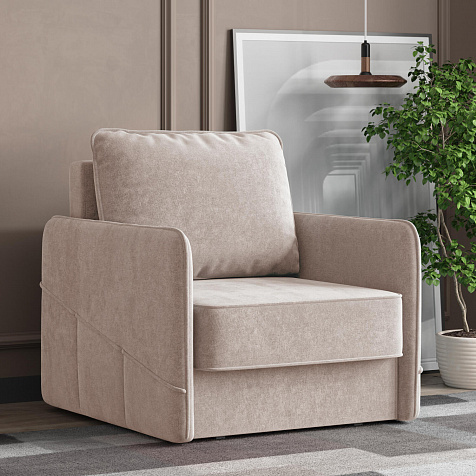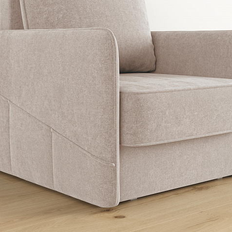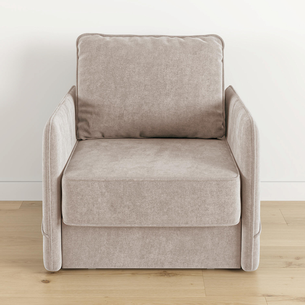 Стильное кресло «Симпл» с узкими подлокотниками станет ярким акцентом в современной гостиной. Кант из мягкого велюра придаёт дизайну завершённый вид, подчёркивает мягкую геометричность. В комплектацию входит большая задняя подушка, позволяющая корректировать глубину посадки. Механизм трансформации «Еврокнижка» обеспечит комфортное, ровное спальное место.