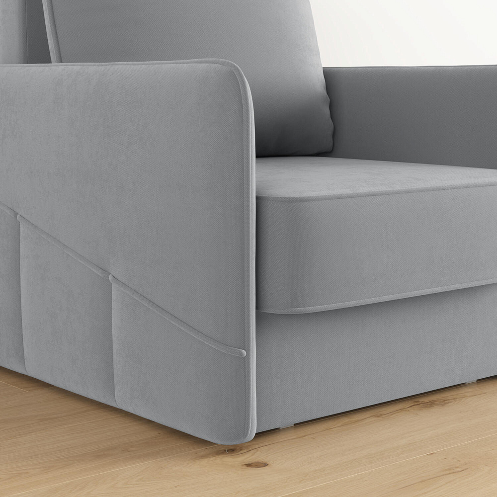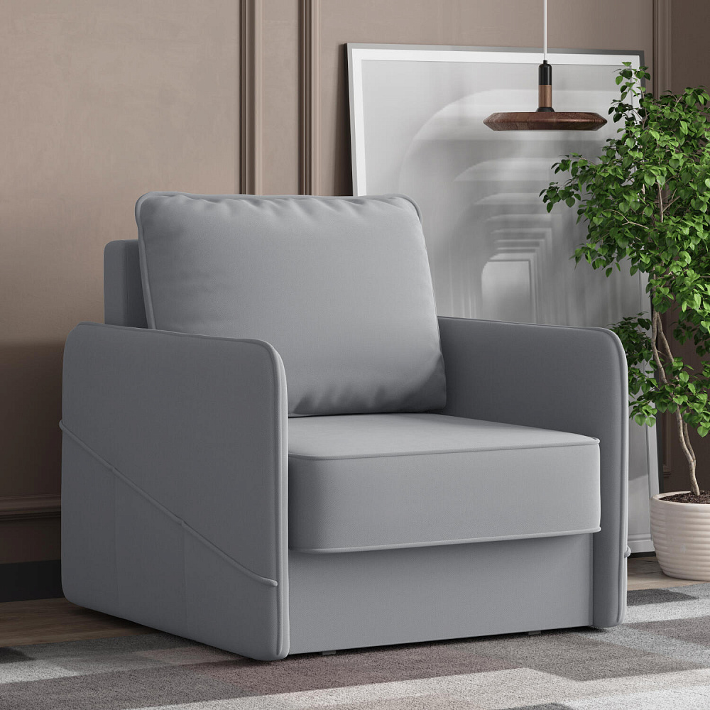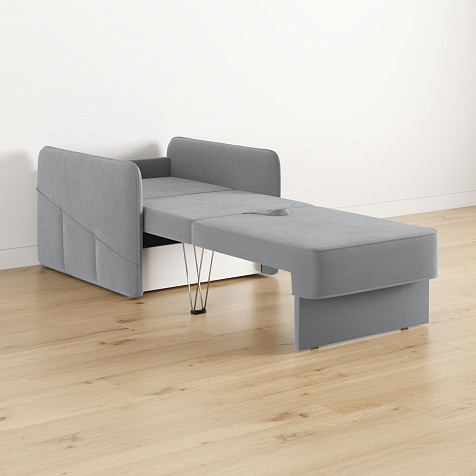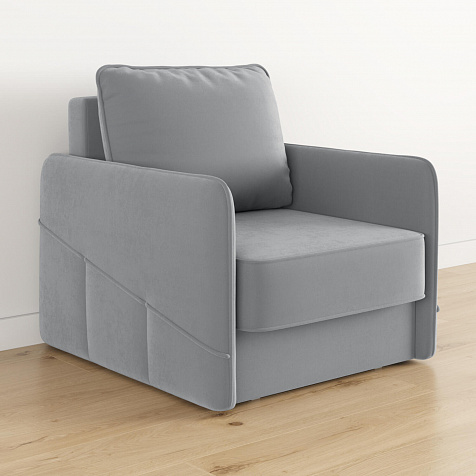 Стильное кресло «Симпл» с узкими подлокотниками станет ярким акцентом в современной гостиной. Кант из мягкого велюра придаёт дизайну завершённый вид, подчёркивает мягкую геометричность. В комплектацию входит большая задняя подушка, позволяющая корректировать глубину посадки. Механизм трансформации «Еврокнижка» обеспечит комфортное, ровное спальное место.