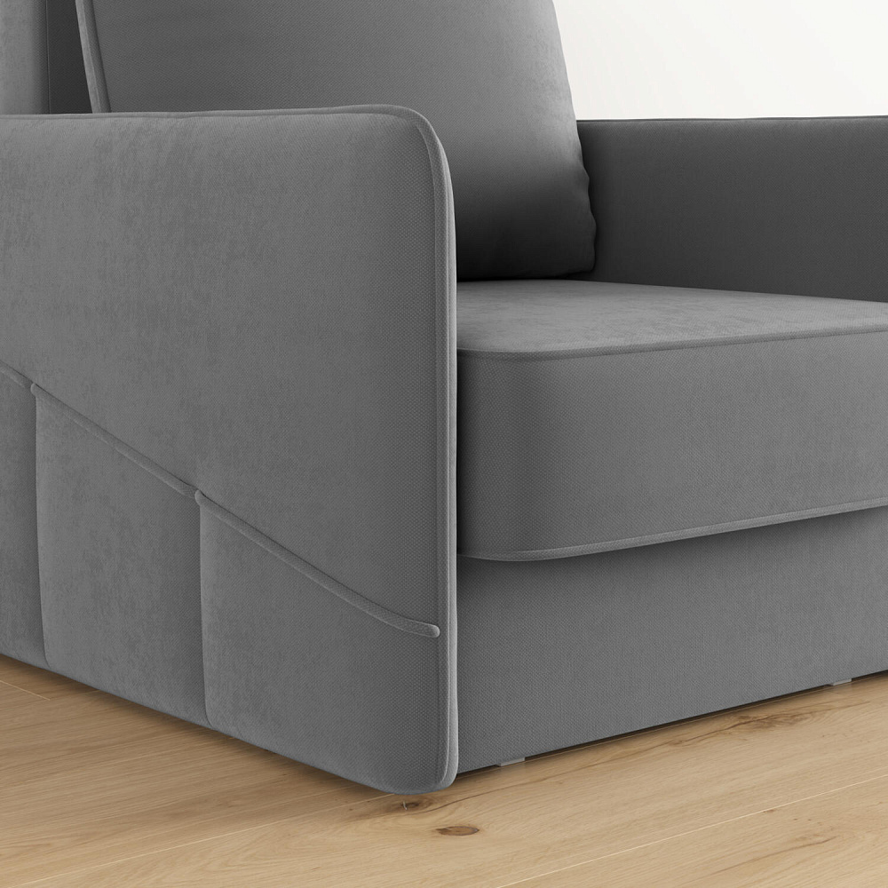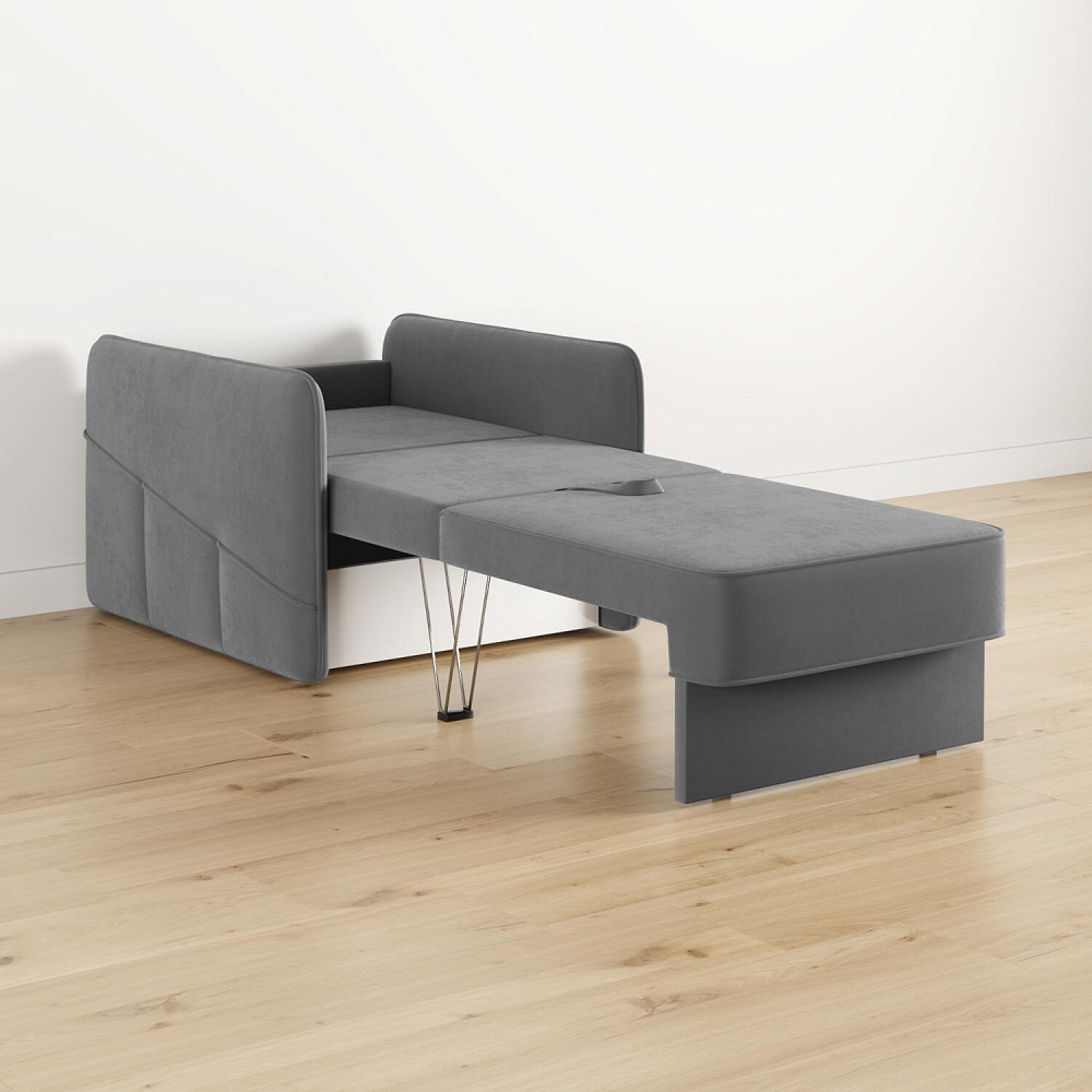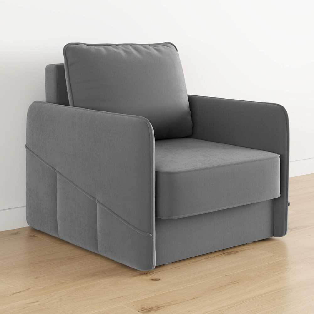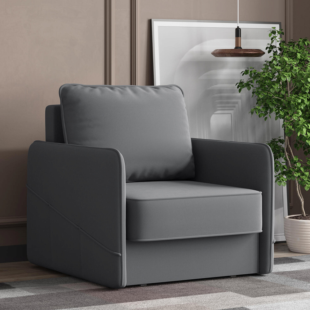 Стильное кресло «Симпл» с узкими подлокотниками станет ярким акцентом в современной гостиной. Кант из мягкого велюра придаёт дизайну завершённый вид, подчёркивает мягкую геометричность. В комплектацию входит большая задняя подушка, позволяющая корректировать глубину посадки. Механизм трансформации «Еврокнижка» обеспечит комфортное, ровное спальное место.