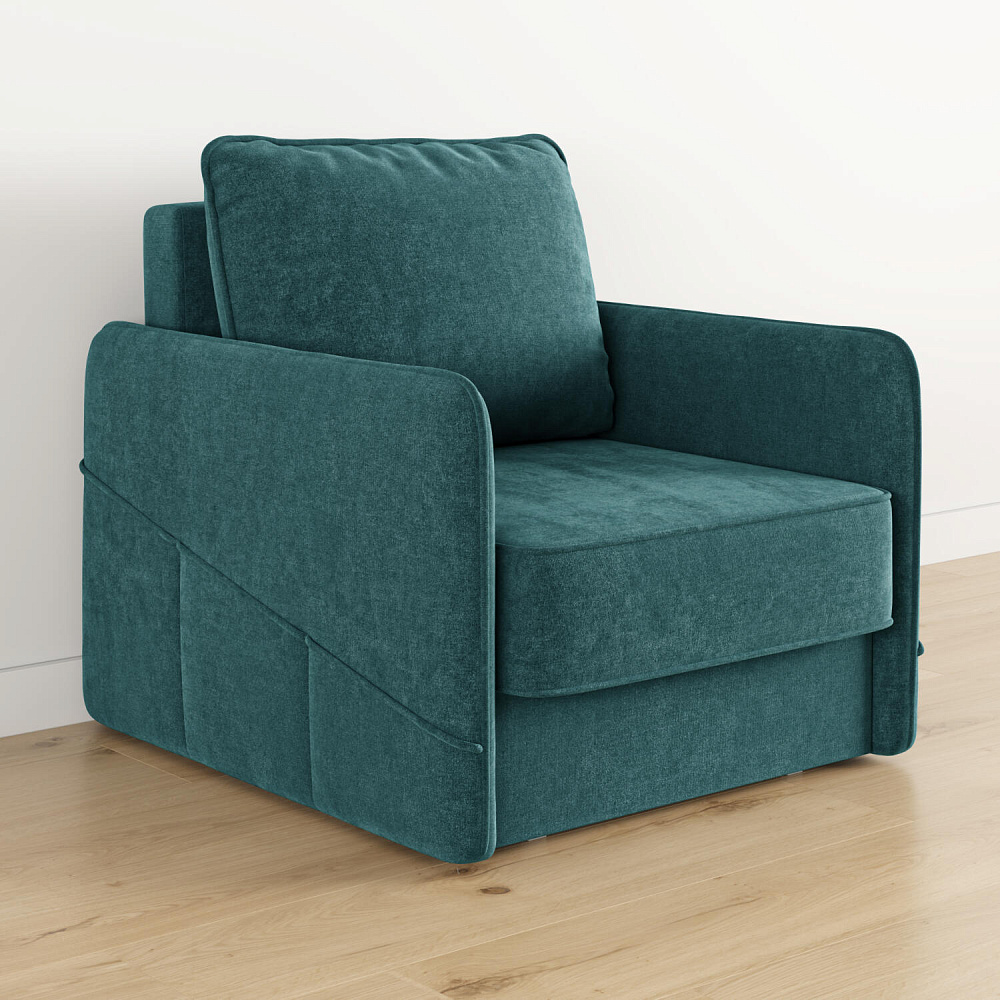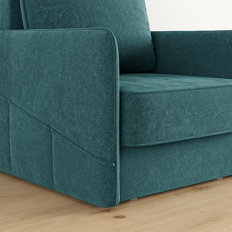 Стильное кресло «Симпл» с узкими подлокотниками станет ярким акцентом в современной гостиной. Кант из мягкого велюра придаёт дизайну завершённый вид, подчёркивает мягкую геометричность. В комплектацию входит большая задняя подушка, позволяющая корректировать глубину посадки. Механизм трансформации «Еврокнижка» обеспечит комфортное, ровное спальное место.