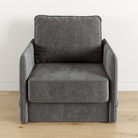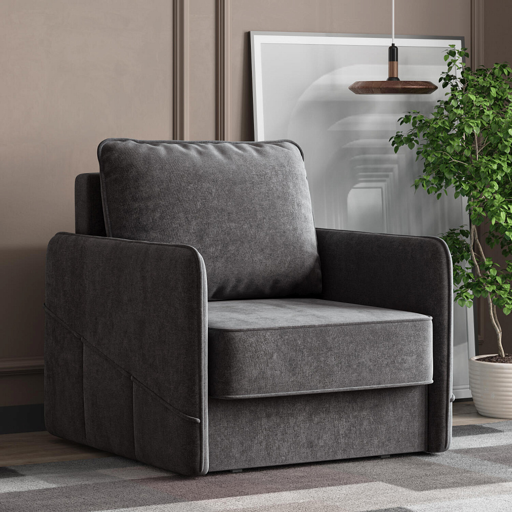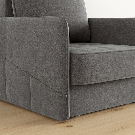 Стильное кресло «Симпл» с узкими подлокотниками станет ярким акцентом в современной гостиной. Кант из мягкого велюра придаёт дизайну завершённый вид, подчёркивает мягкую геометричность. В комплектацию входит большая задняя подушка, позволяющая корректировать глубину посадки. Механизм трансформации «Еврокнижка» обеспечит комфортное, ровное спальное место.