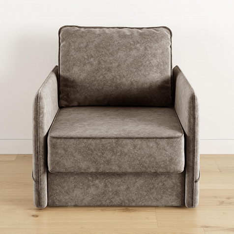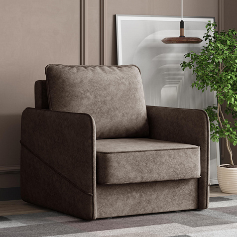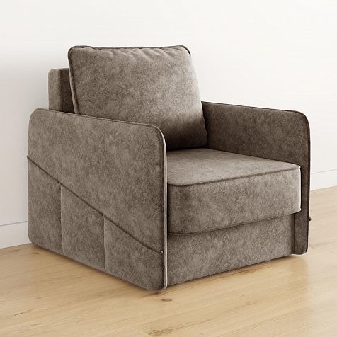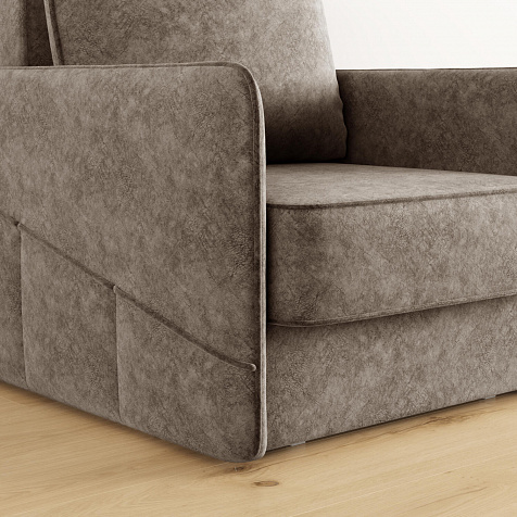 Стильное кресло «Симпл» с узкими подлокотниками станет ярким акцентом в современной гостиной. Кант из мягкого велюра придаёт дизайну завершённый вид, подчёркивает мягкую геометричность. В комплектацию входит большая задняя подушка, позволяющая корректировать глубину посадки. Механизм трансформации «Еврокнижка» обеспечит комфортное, ровное спальное место.