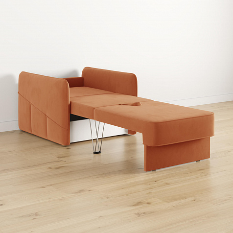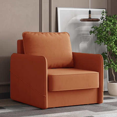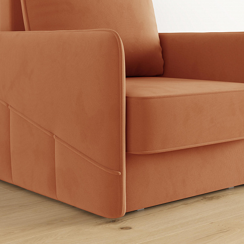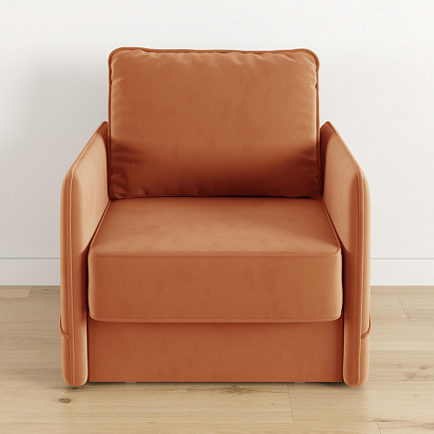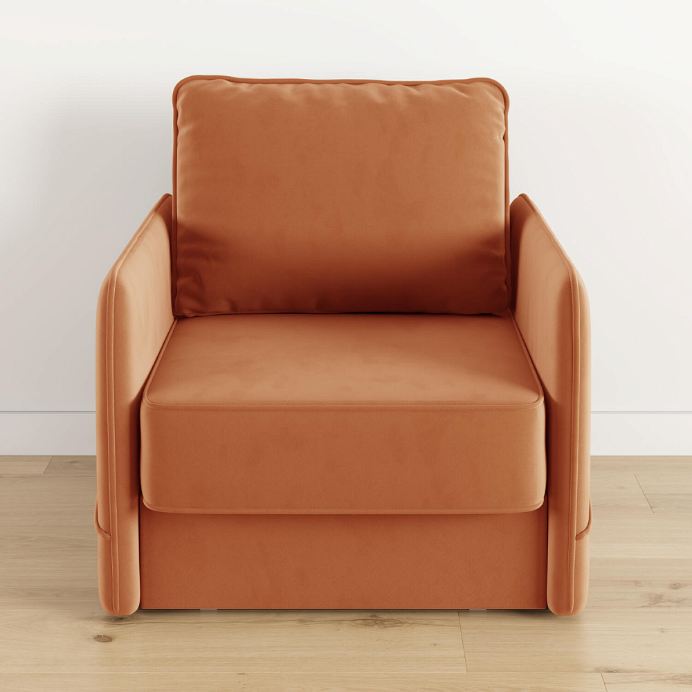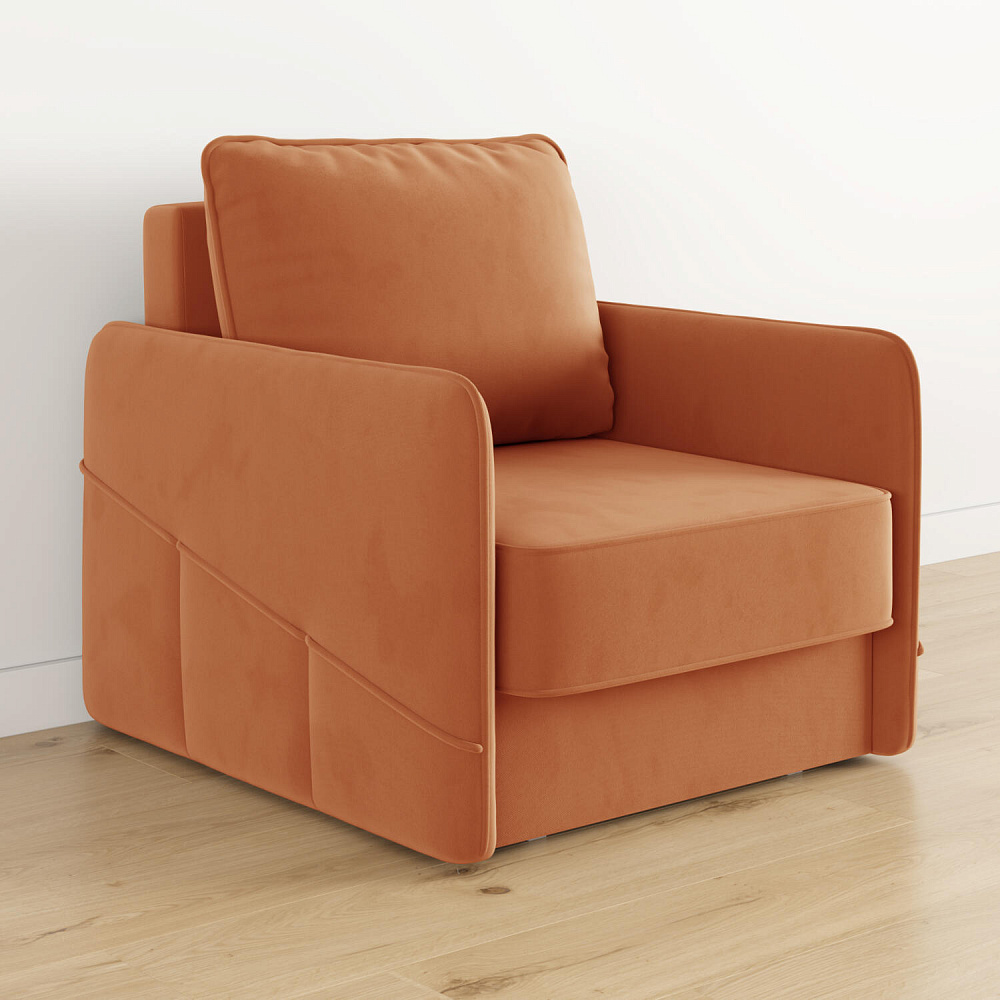 Стильное кресло «Симпл» с узкими подлокотниками станет ярким акцентом в современной гостиной. Кант из мягкого велюра придаёт дизайну завершённый вид, подчёркивает мягкую геометричность. В комплектацию входит большая задняя подушка, позволяющая корректировать глубину посадки. Механизм трансформации «Еврокнижка» обеспечит комфортное, ровное спальное место.