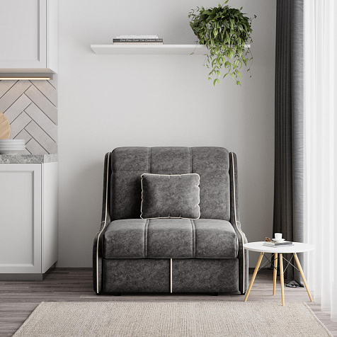 Кресло-кровать «Бонн» — лучшее сочетание компактности и функциональности. Благодаря отсутствию подлокотников оно не займет много места в комнате. С помощью удобного механизма трансформации «Аккордеон» кресло легко превращается в односпальную кровать с ровным спальным местом. Плавность форм и лаконичность модели подчеркивают акцентные линии декоративного канта.