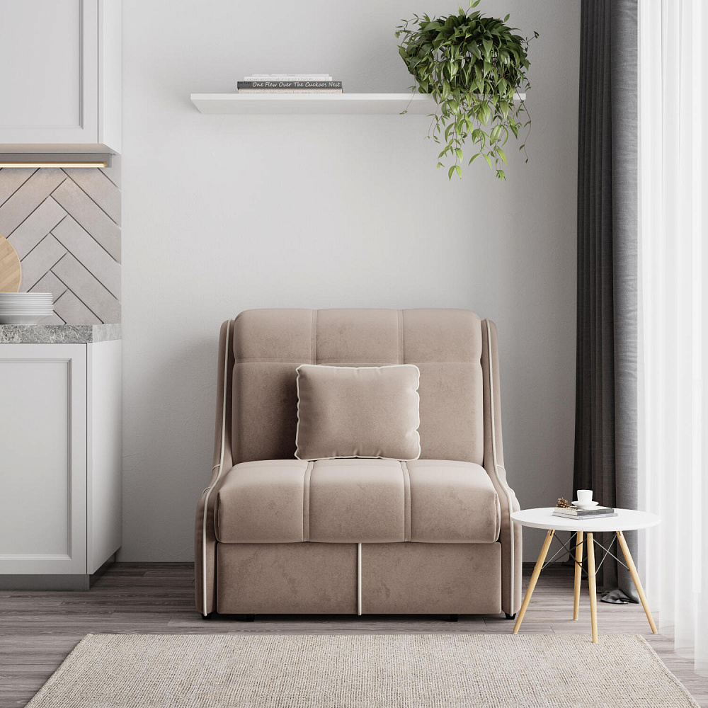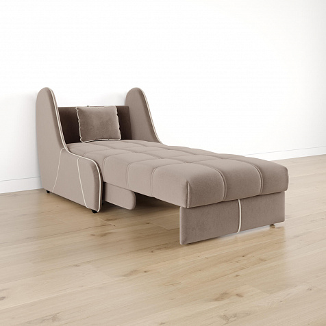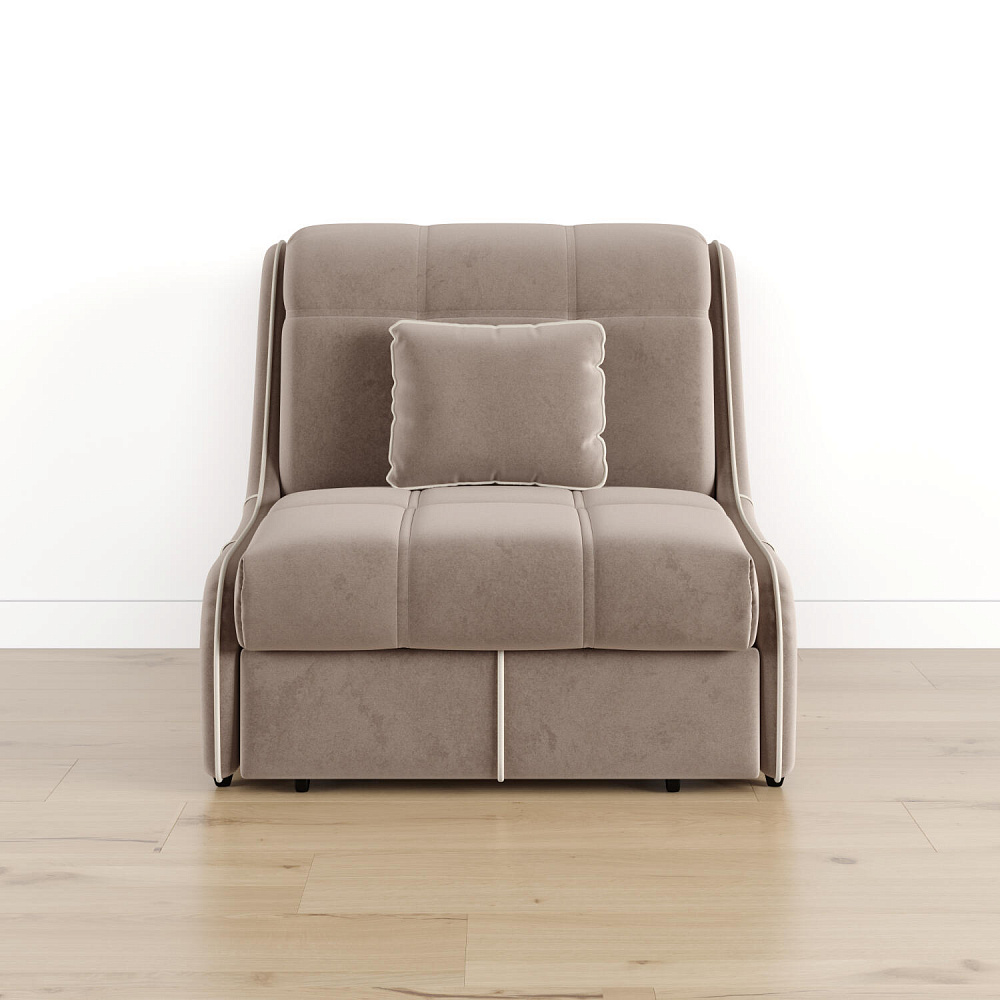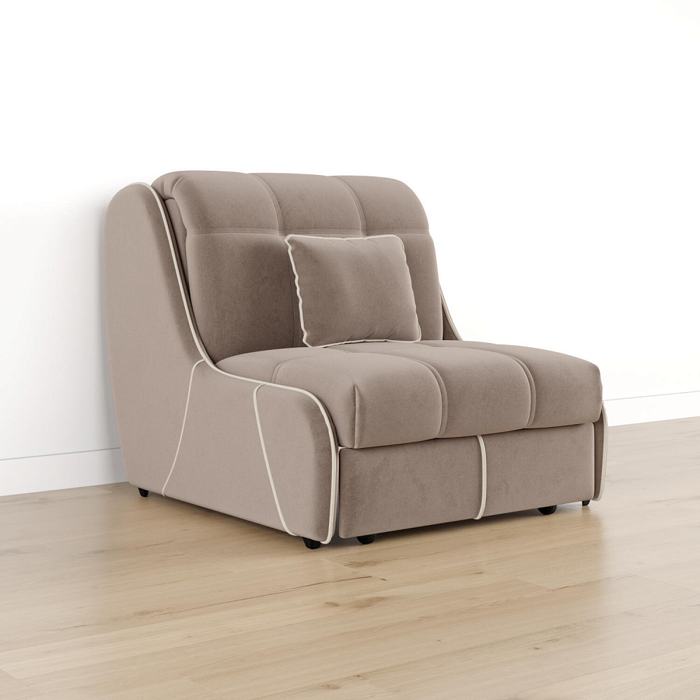 Кресло-кровать «Бонн» — лучшее сочетание компактности и функциональности. Благодаря отсутствию подлокотников оно не займет много места в комнате. С помощью удобного механизма трансформации «Аккордеон» кресло легко превращается в односпальную кровать с ровным спальным местом. Плавность форм и лаконичность модели подчеркивают акцентные линии декоративного канта.