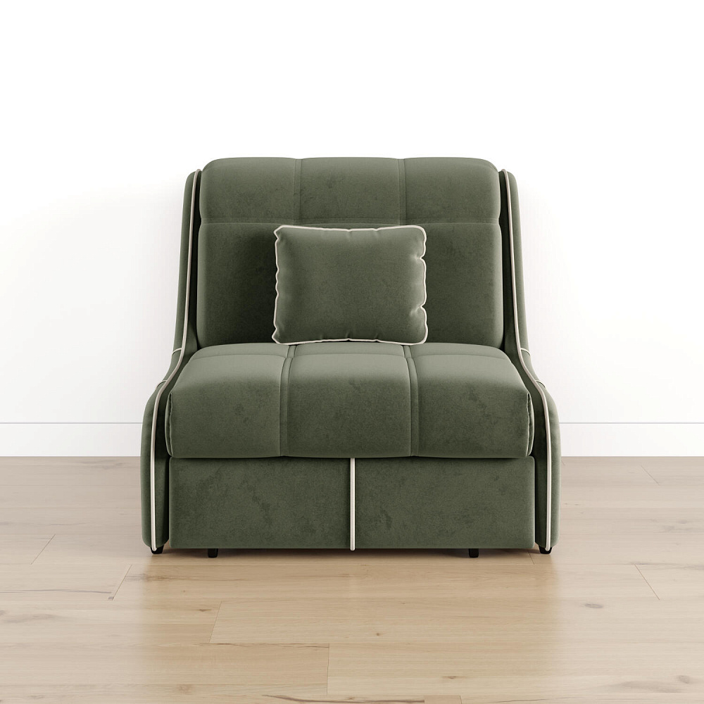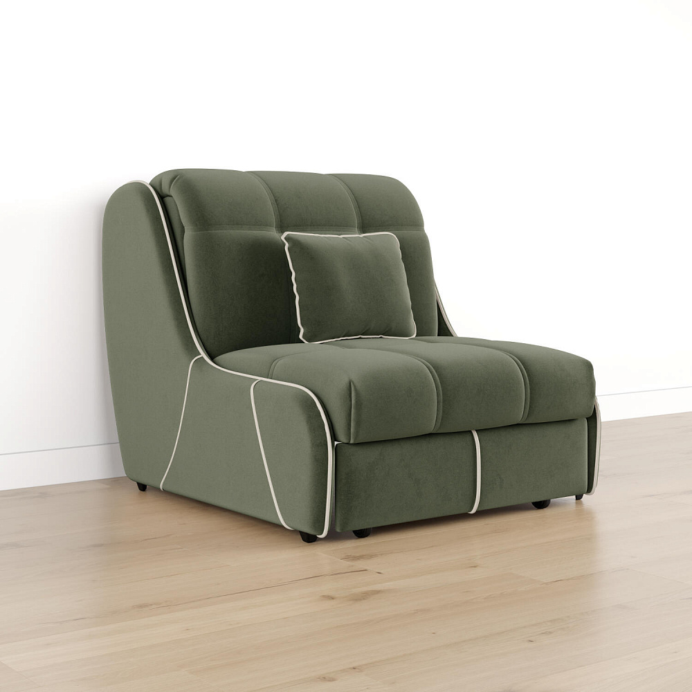 Кресло-кровать «Бонн» — лучшее сочетание компактности и функциональности. Благодаря отсутствию подлокотников оно не займет много места в комнате. С помощью удобного механизма трансформации «Аккордеон» кресло легко превращается в односпальную кровать с ровным спальным местом. Плавность форм и лаконичность модели подчеркивают акцентные линии декоративного канта.
