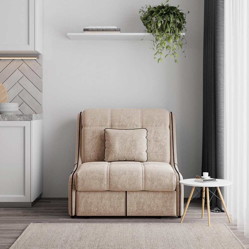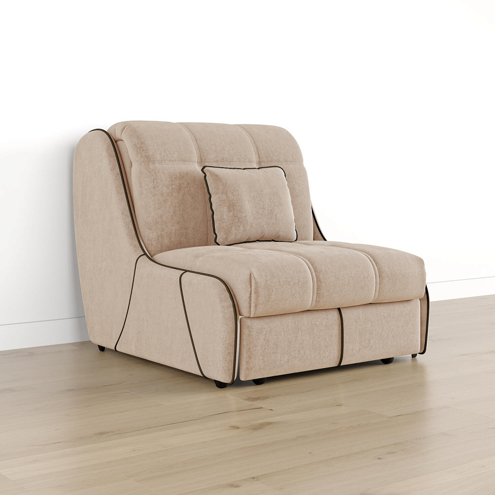 Кресло-кровать «Бонн» — лучшее сочетание компактности и функциональности. Благодаря отсутствию подлокотников оно не займет много места в комнате. С помощью удобного механизма трансформации «Аккордеон» кресло легко превращается в односпальную кровать с ровным спальным местом. Плавность форм и лаконичность модели подчеркивают акцентные линии декоративного канта.