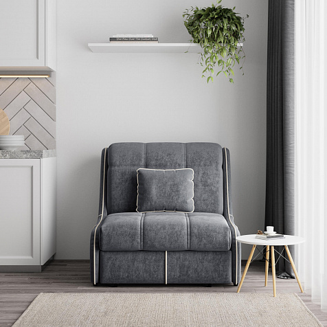 Кресло-кровать «Бонн» — лучшее сочетание компактности и функциональности. Благодаря отсутствию подлокотников оно не займет много места в комнате. С помощью удобного механизма трансформации «Аккордеон» кресло легко превращается в односпальную кровать с ровным спальным местом. Плавность форм и лаконичность модели подчеркивают акцентные линии декоративного канта.