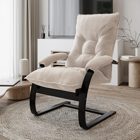 Мягкое кресло «Бари» поможет создать уютный уголок для расслабления как в квартире, так и в загородном доме. Лаконичный дизайн модели отличается изогнутыми опорами и декоративными утяжками на спинке. Обивка выполнена из приятного на ощупь велюра. Кресло можно откинуть для более комфортного отдыха. Благодаря фанерному каркасу кресло приятно пружинит и в то же время выдерживает большие нагрузки.