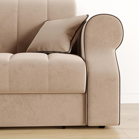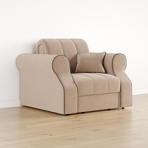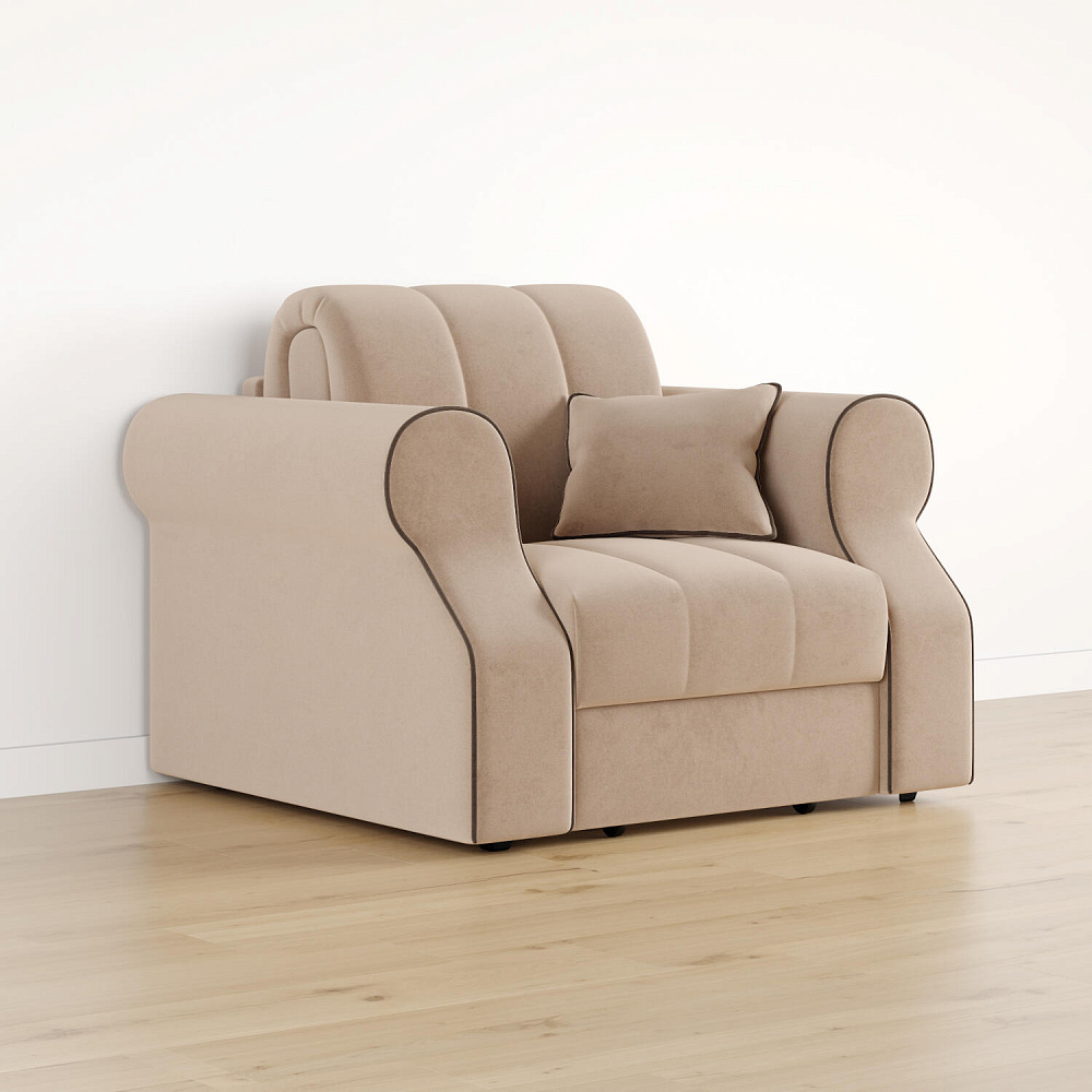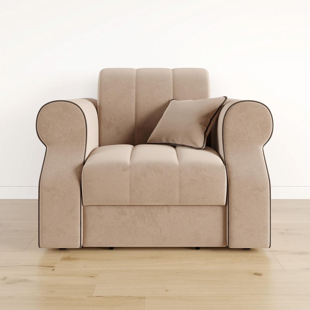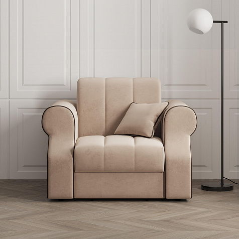 Кресло-кровать «Париж» придётся по душе ценителям стильной и функциональной мебели. Мягкое кресло с удобными подлокотниками и глубоким сиденьем позволит максимально расслабиться после тяжёлого дня. Благодаря простому в использовании механизму трансформации «Аккордеон», кресло легко превращается в односпальную кровать с ровным спальным местом. Плавность форм и лаконичность модели подчеркивают акцентные линии декоративного канта.