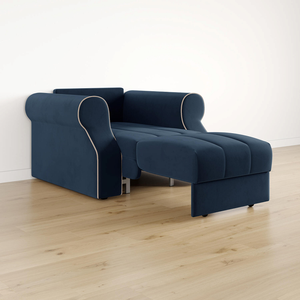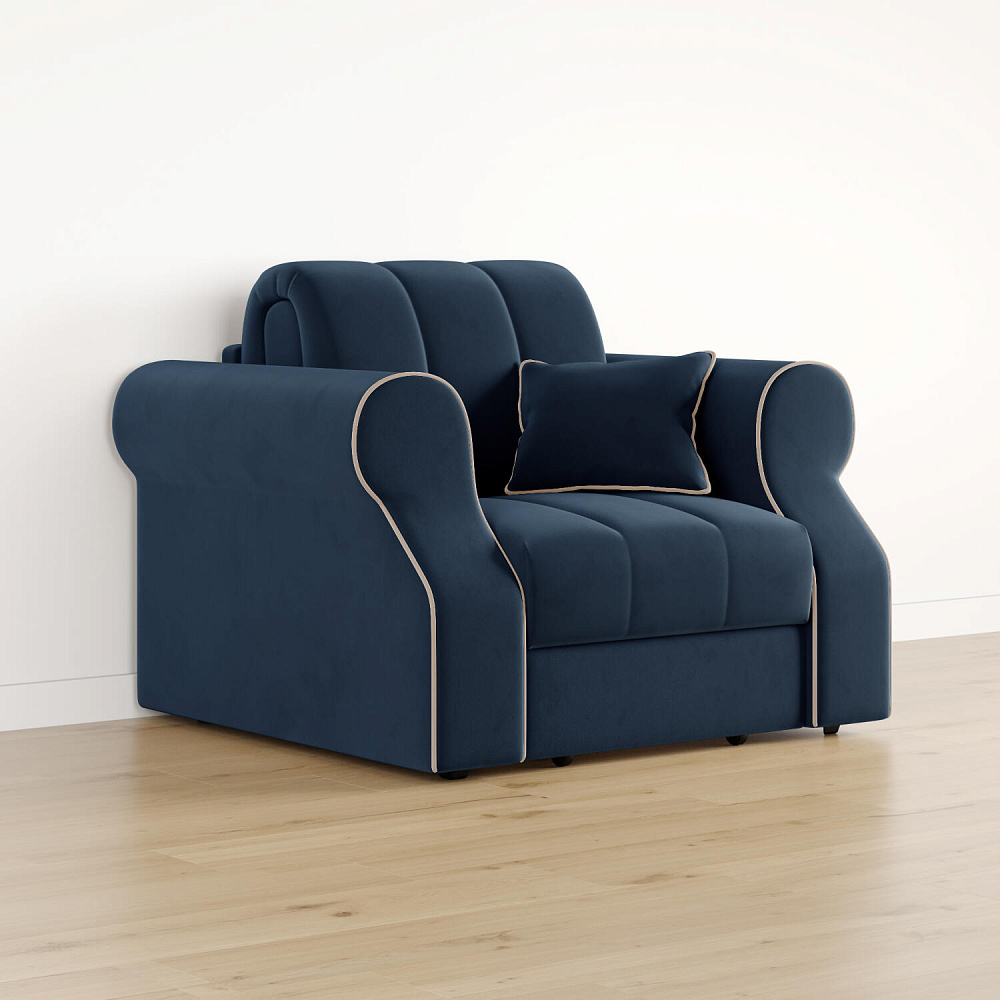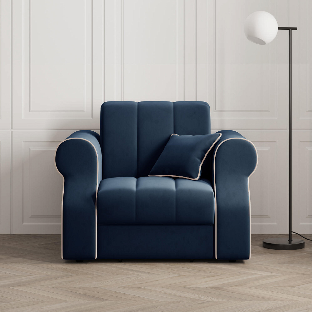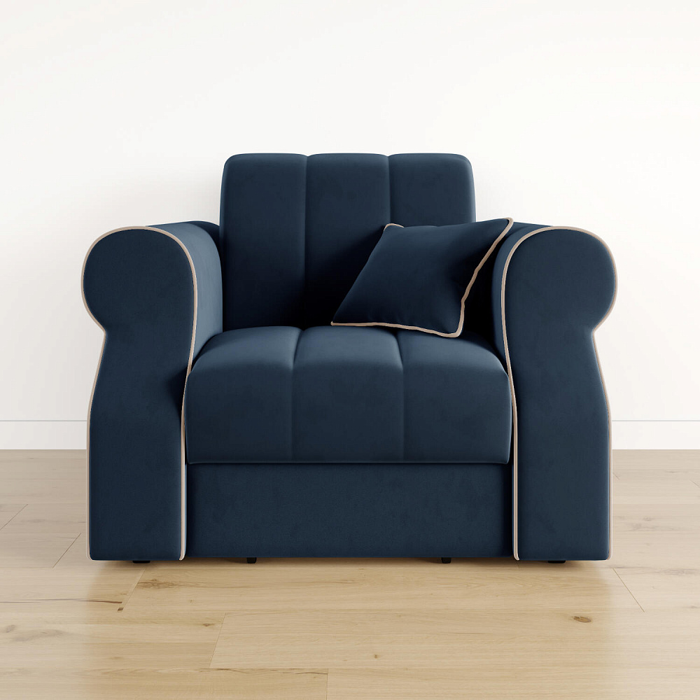 Кресло-кровать «Париж» придётся по душе ценителям стильной и функциональной мебели. Мягкое кресло с удобными подлокотниками и глубоким сиденьем позволит максимально расслабиться после тяжёлого дня. Благодаря простому в использовании механизму трансформации «Аккордеон», кресло легко превращается в односпальную кровать с ровным спальным местом. Плавность форм и лаконичность модели подчеркивают акцентные линии декоративного канта.