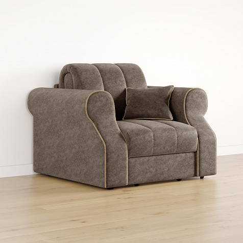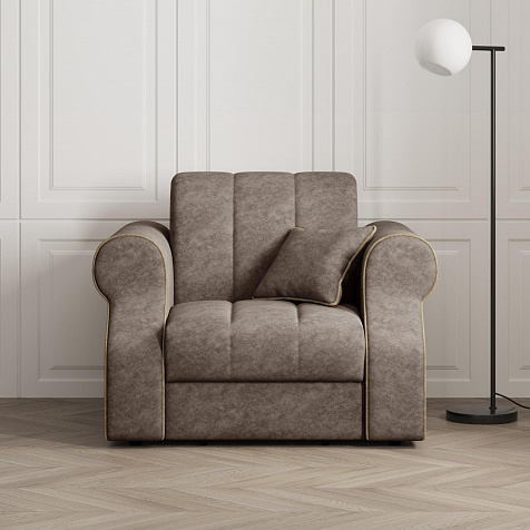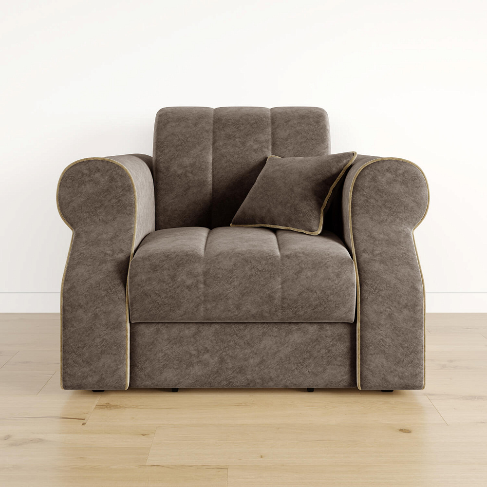 Кресло-кровать «Париж» придётся по душе ценителям стильной и функциональной мебели. Мягкое кресло с удобными подлокотниками и глубоким сиденьем позволит максимально расслабиться после тяжёлого дня. Благодаря простому в использовании механизму трансформации «Аккордеон», кресло легко превращается в односпальную кровать с ровным спальным местом. Плавность форм и лаконичность модели подчеркивают акцентные линии декоративного канта.