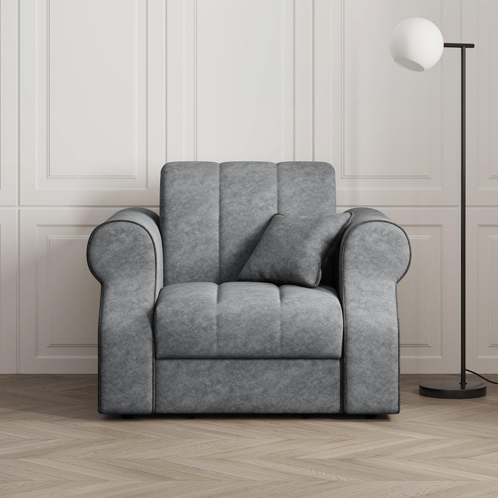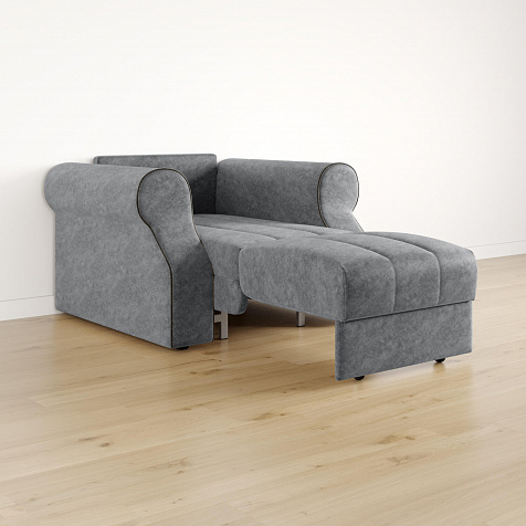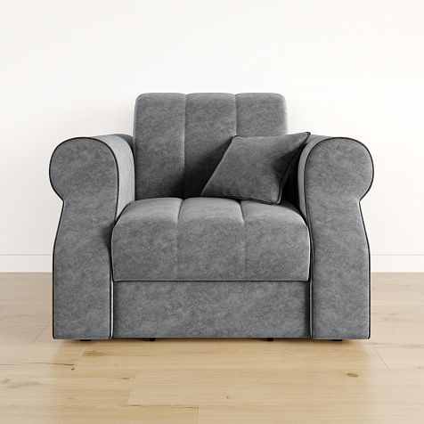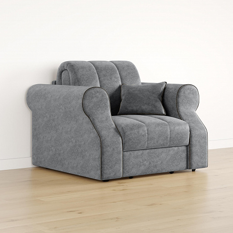 Кресло-кровать «Париж» придётся по душе ценителям стильной и функциональной мебели. Мягкое кресло с удобными подлокотниками и глубоким сиденьем позволит максимально расслабиться после тяжёлого дня. Благодаря простому в использовании механизму трансформации «Аккордеон», кресло легко превращается в односпальную кровать с ровным спальным местом. Плавность форм и лаконичность модели подчеркивают акцентные линии декоративного канта.