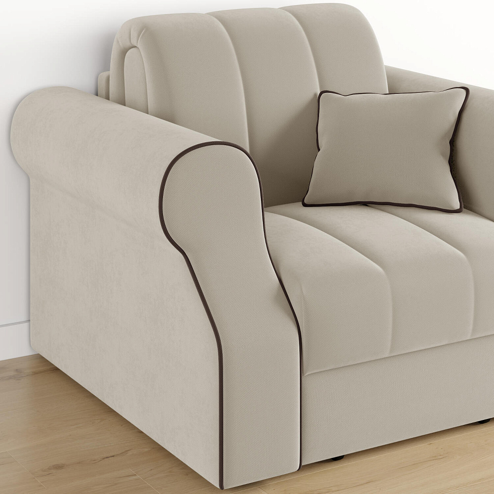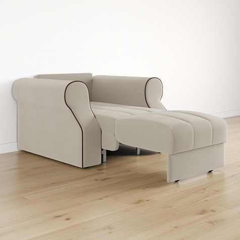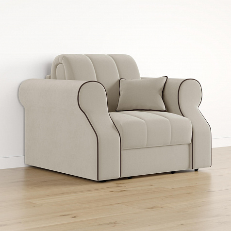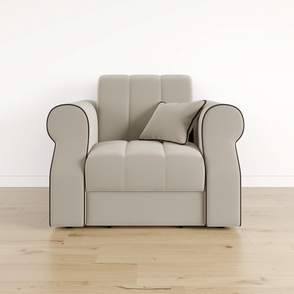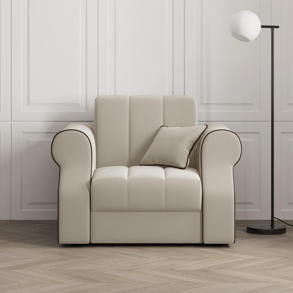 Кресло-кровать «Париж» придётся по душе ценителям стильной и функциональной мебели. Мягкое кресло с удобными подлокотниками и глубоким сиденьем позволит максимально расслабиться после тяжёлого дня. Благодаря простому в использовании механизму трансформации «Аккордеон», кресло легко превращается в односпальную кровать с ровным спальным местом. Плавность форм и лаконичность модели подчеркивают акцентные линии декоративного канта.