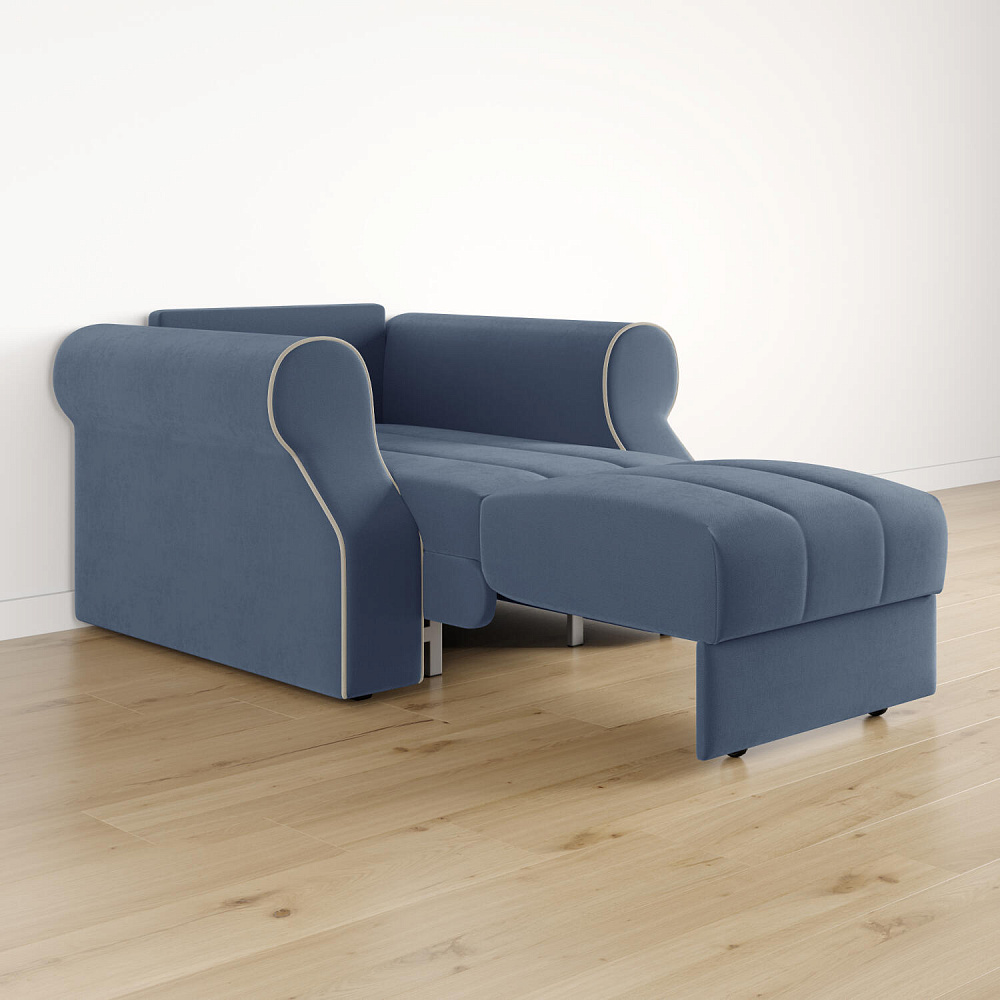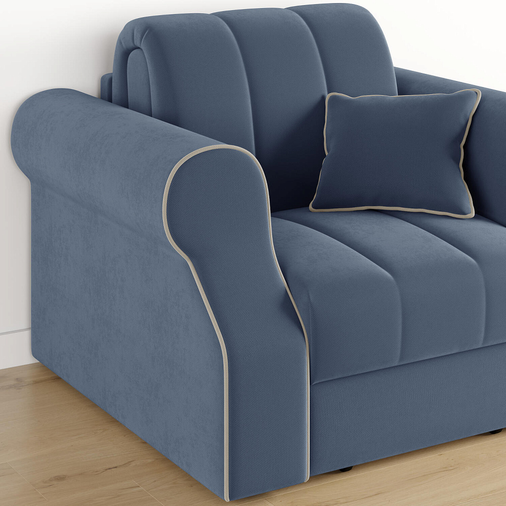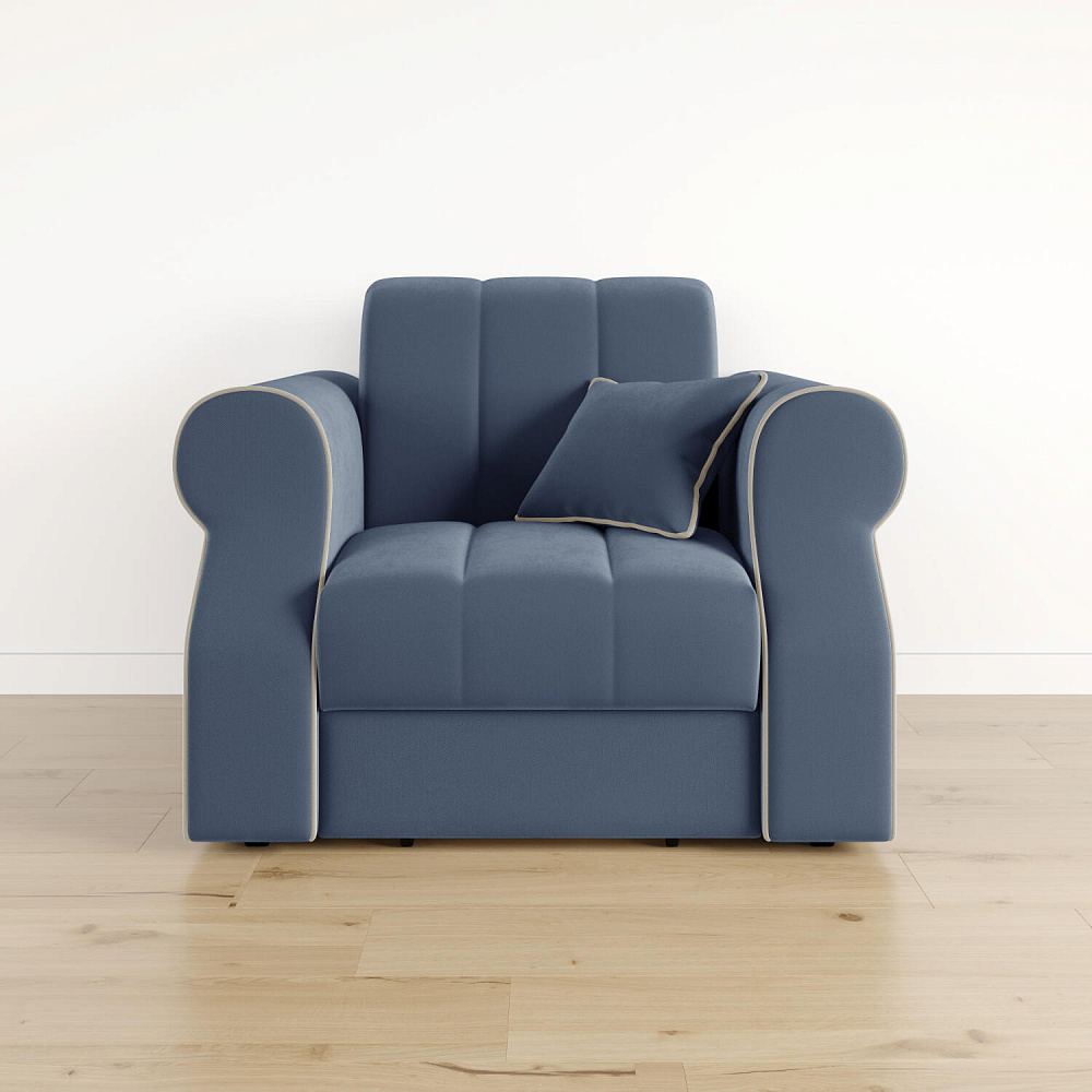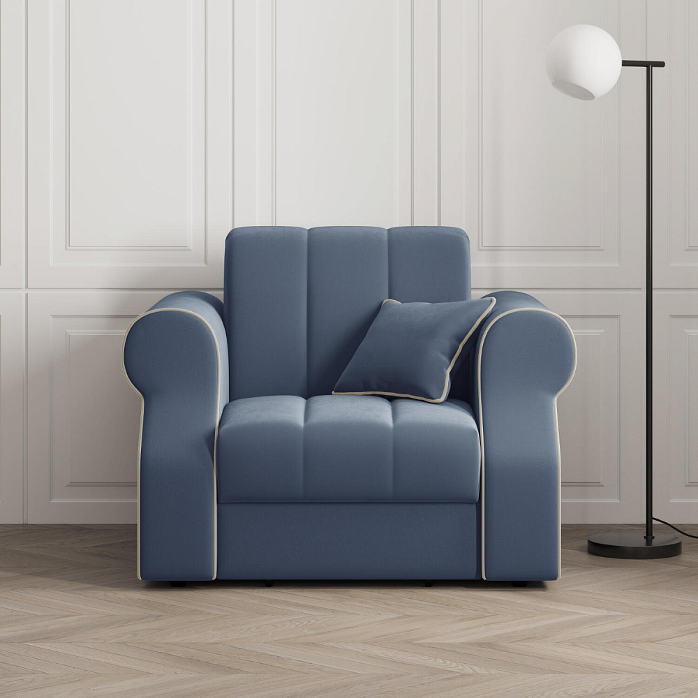 Кресло-кровать «Париж» придётся по душе ценителям стильной и функциональной мебели. Мягкое кресло с удобными подлокотниками и глубоким сиденьем позволит максимально расслабиться после тяжёлого дня. Благодаря простому в использовании механизму трансформации «Аккордеон», кресло легко превращается в односпальную кровать с ровным спальным местом. Плавность форм и лаконичность модели подчеркивают акцентные линии декоративного канта.