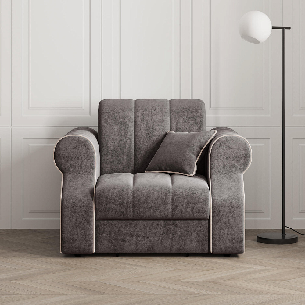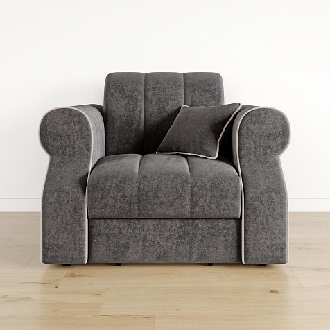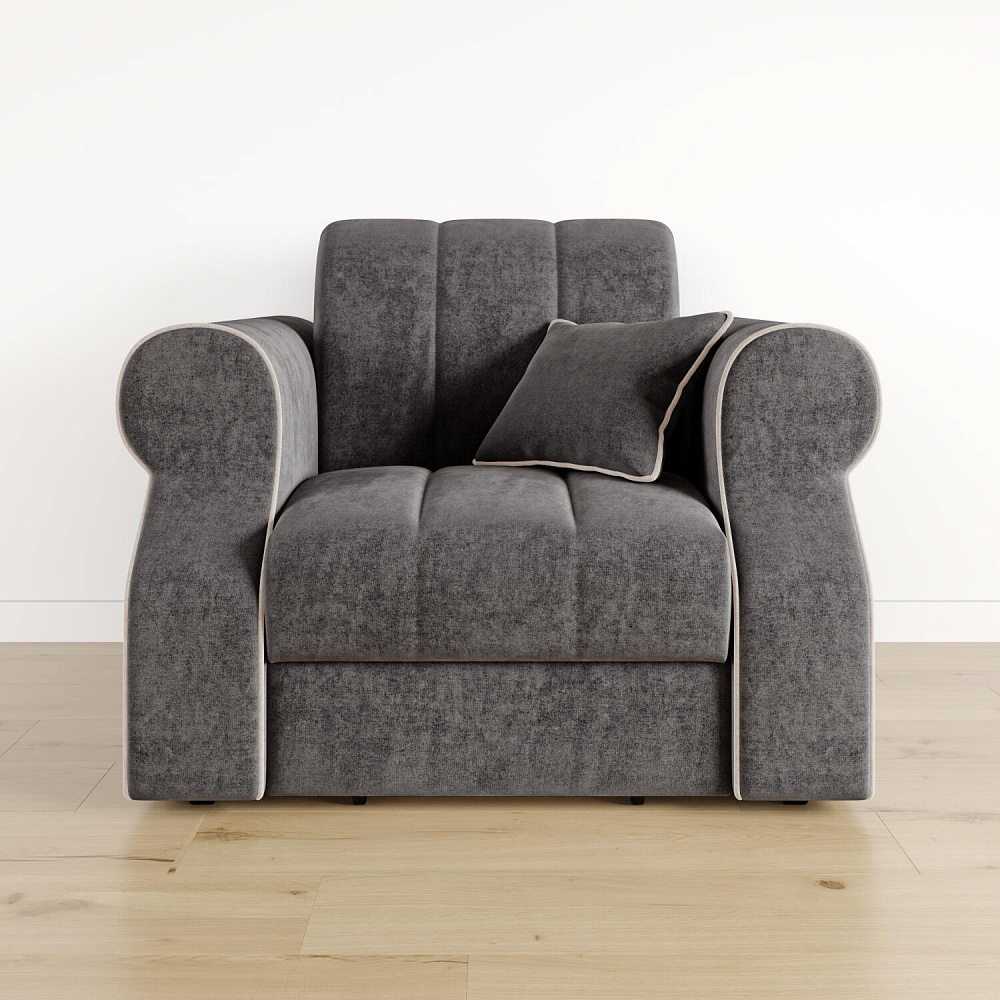 Кресло-кровать «Париж» придётся по душе ценителям стильной и функциональной мебели. Мягкое кресло с удобными подлокотниками и глубоким сиденьем позволит максимально расслабиться после тяжёлого дня. Благодаря простому в использовании механизму трансформации «Аккордеон», кресло легко превращается в односпальную кровать с ровным спальным местом. Плавность форм и лаконичность модели подчеркивают акцентные линии декоративного канта.