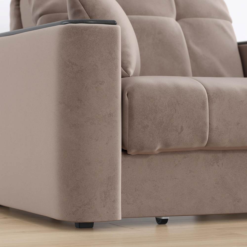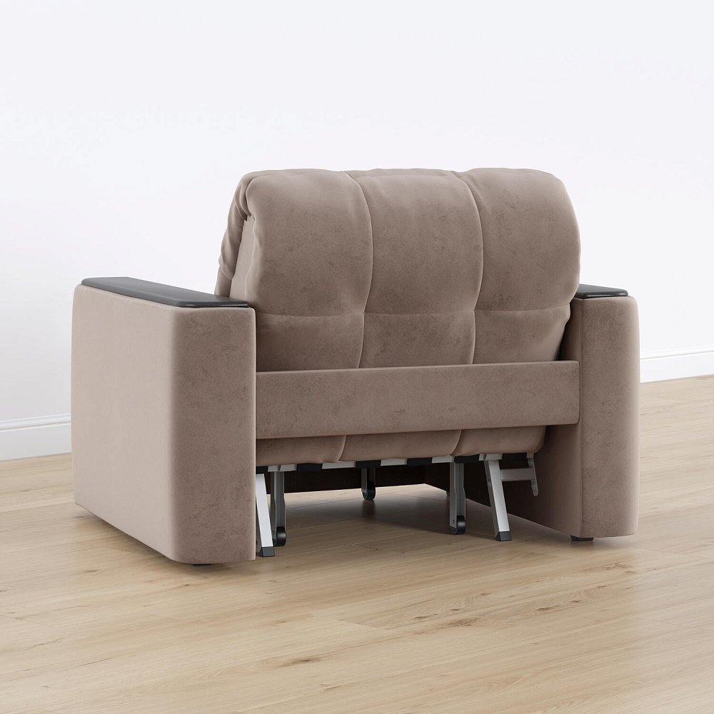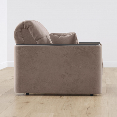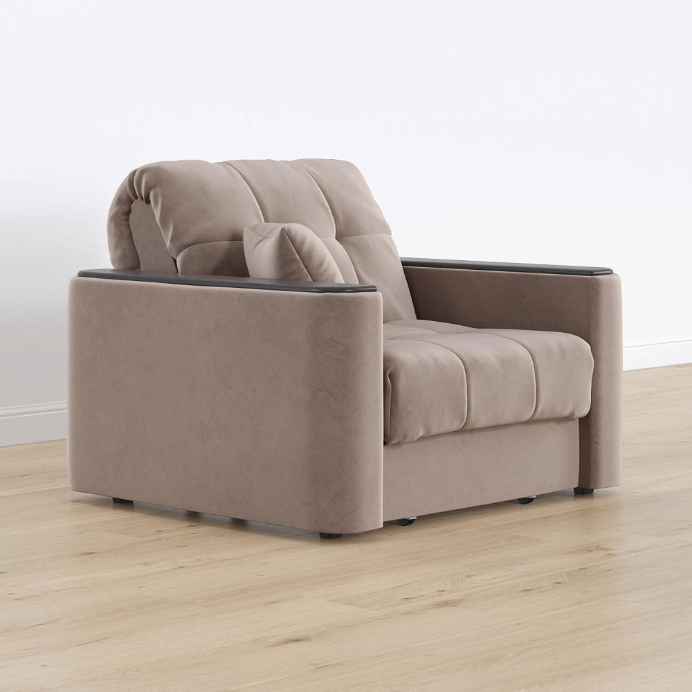 Кресло-кровать «Камелот» — лучшее сочетание комфорта, уюта и компактности в современном стиле. Модель в лаконичном дизайне поможет оформить уютную и удобную зону для сна и отдыха в небольших гостиных, спальнях или детских комнатах. Изюминкой модели являются деревянные накладки на подлокотниках, на которых можно разместить пульт от телевизора или чашку чая.