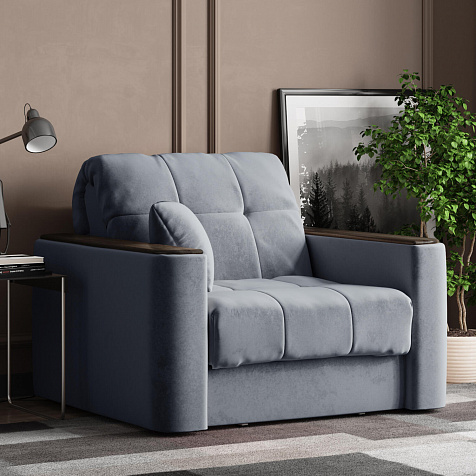 Кресло-кровать «Камелот» — лучшее сочетание комфорта, уюта и компактности в современном стиле. Модель в лаконичном дизайне поможет оформить уютную и удобную зону для сна и отдыха в небольших гостиных, спальнях или детских комнатах. Изюминкой модели являются деревянные накладки на подлокотниках, на которых можно разместить пульт от телевизора или чашку чая.