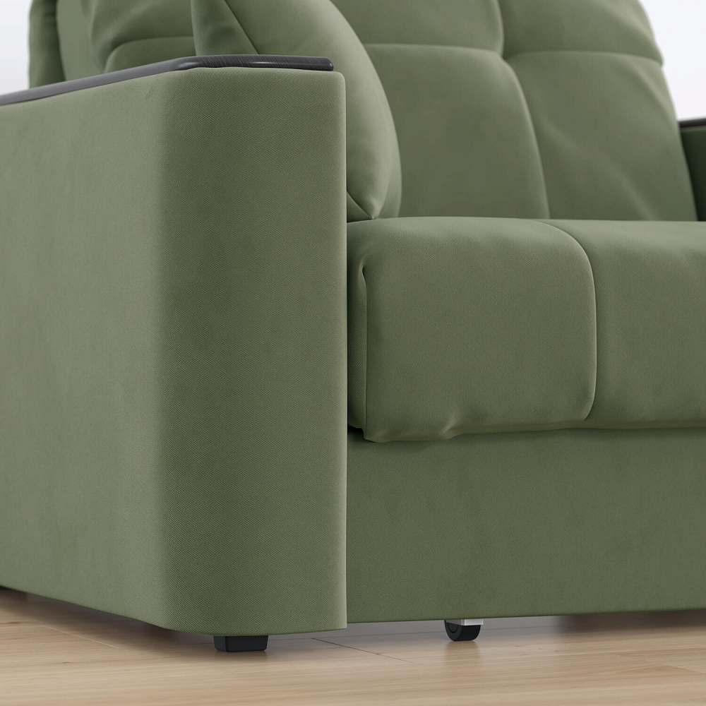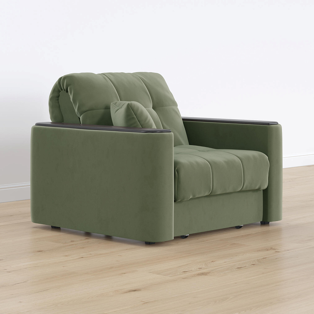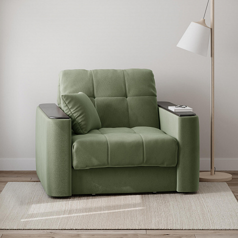 Кресло-кровать «Камелот» — лучшее сочетание комфорта, уюта и компактности в современном стиле. Модель в лаконичном дизайне поможет оформить уютную и удобную зону для сна и отдыха в небольших гостиных, спальнях или детских комнатах. Изюминкой модели являются деревянные накладки на подлокотниках, на которых можно разместить пульт от телевизора или чашку чая.