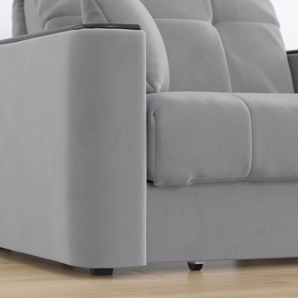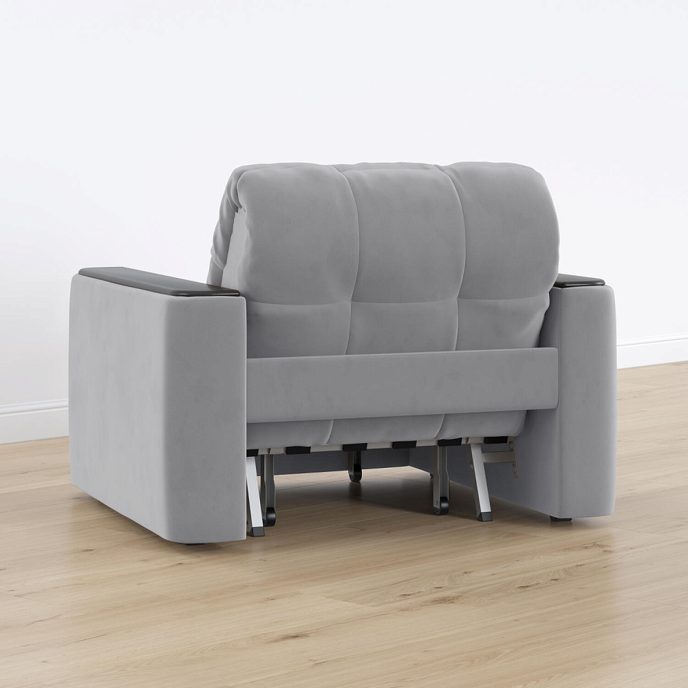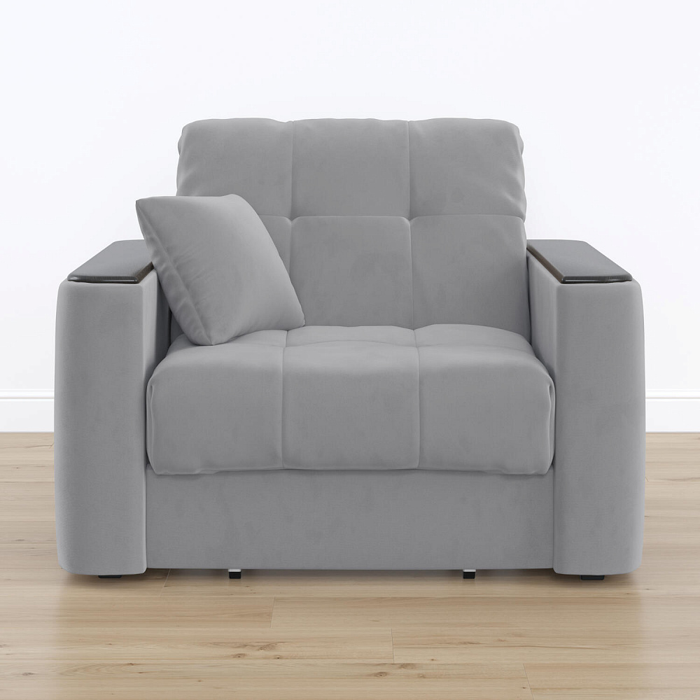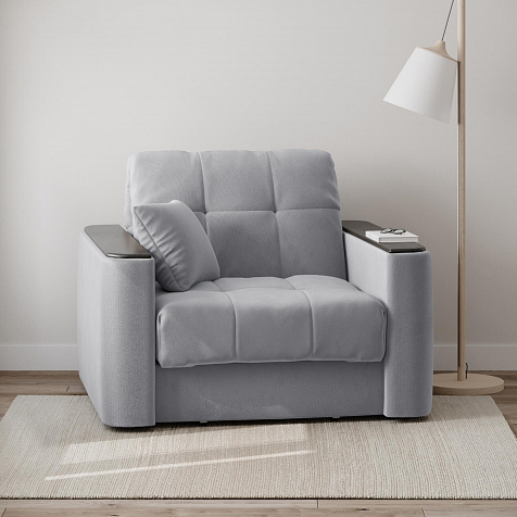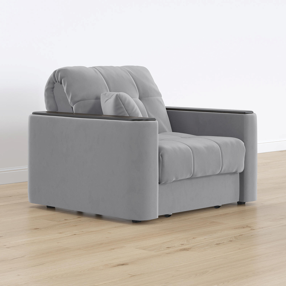 Кресло-кровать «Камелот» — лучшее сочетание комфорта, уюта и компактности в современном стиле. Модель в лаконичном дизайне поможет оформить уютную и удобную зону для сна и отдыха в небольших гостиных, спальнях или детских комнатах. Изюминкой модели являются деревянные накладки на подлокотниках, на которых можно разместить пульт от телевизора или чашку чая.