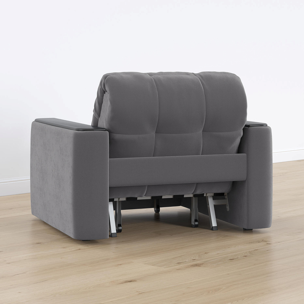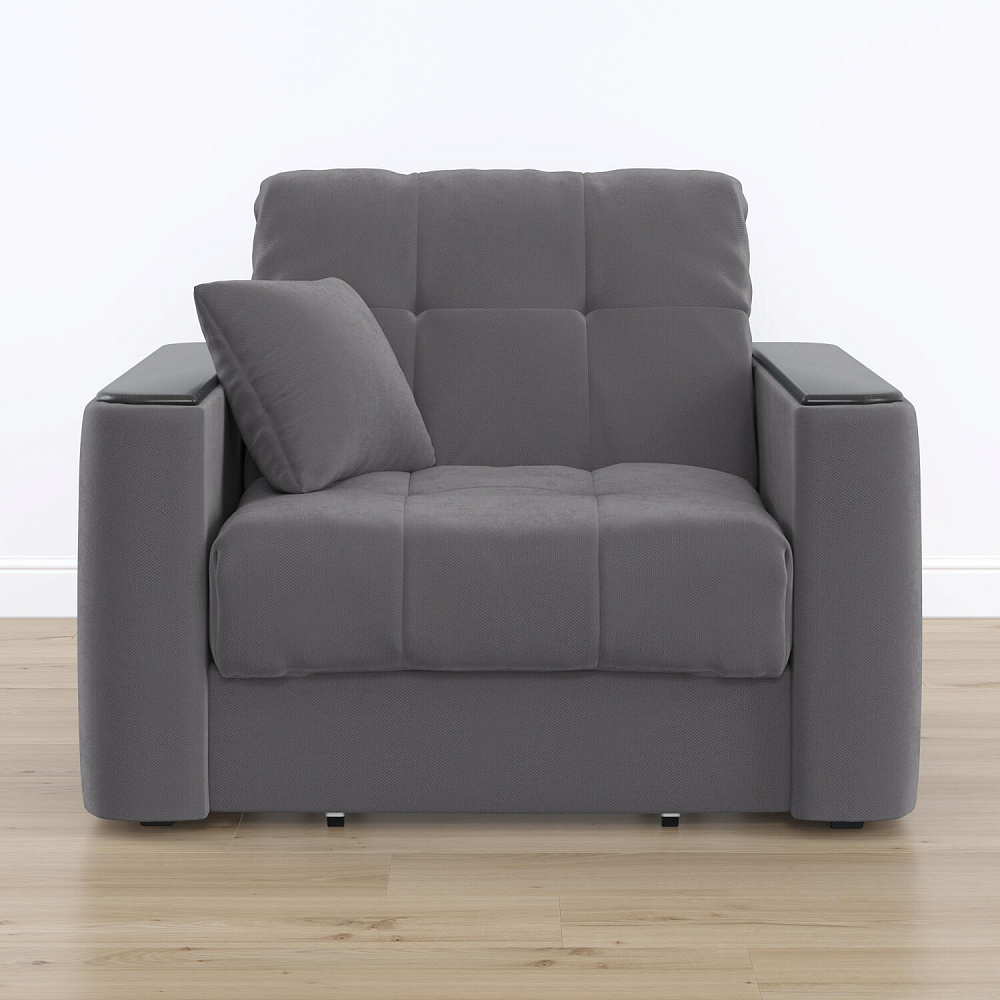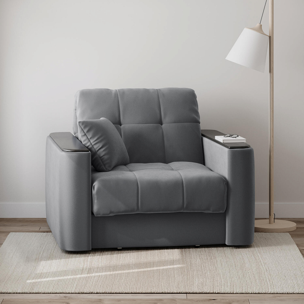 Кресло-кровать «Камелот» — лучшее сочетание комфорта, уюта и компактности в современном стиле. Модель в лаконичном дизайне поможет оформить уютную и удобную зону для сна и отдыха в небольших гостиных, спальнях или детских комнатах. Изюминкой модели являются деревянные накладки на подлокотниках, на которых можно разместить пульт от телевизора или чашку чая.