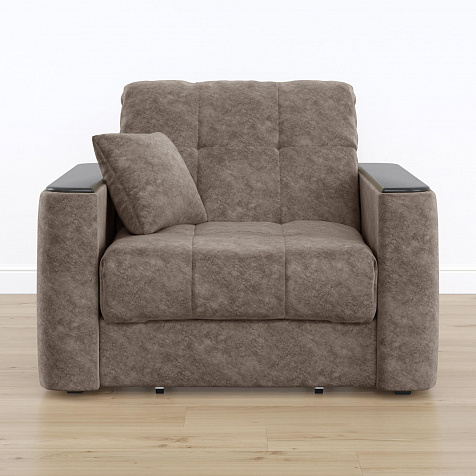 Кресло-кровать «Камелот» — лучшее сочетание комфорта, уюта и компактности в современном стиле. Модель в лаконичном дизайне поможет оформить уютную и удобную зону для сна и отдыха в небольших гостиных, спальнях или детских комнатах. Изюминкой модели являются деревянные накладки на подлокотниках, на которых можно разместить пульт от телевизора или чашку чая.