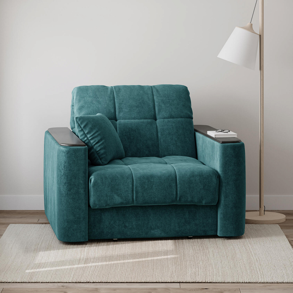 Кресло-кровать «Камелот» — лучшее сочетание комфорта, уюта и компактности в современном стиле. Модель в лаконичном дизайне поможет оформить уютную и удобную зону для сна и отдыха в небольших гостиных, спальнях или детских комнатах. Изюминкой модели являются деревянные накладки на подлокотниках, на которых можно разместить пульт от телевизора или чашку чая.