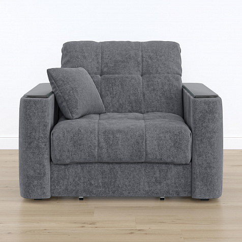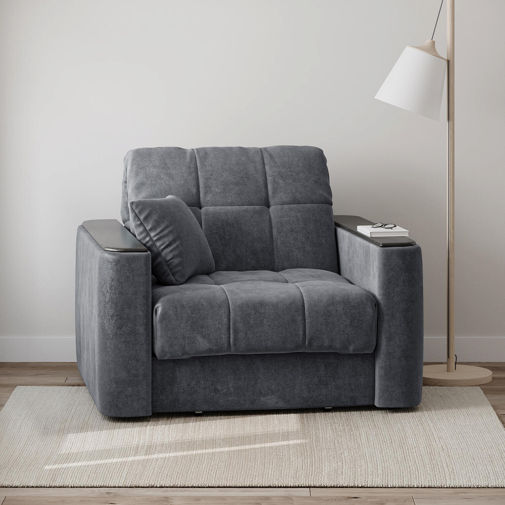 Кресло-кровать «Камелот» — лучшее сочетание комфорта, уюта и компактности в современном стиле. Модель в лаконичном дизайне поможет оформить уютную и удобную зону для сна и отдыха в небольших гостиных, спальнях или детских комнатах. Изюминкой модели являются деревянные накладки на подлокотниках, на которых можно разместить пульт от телевизора или чашку чая.