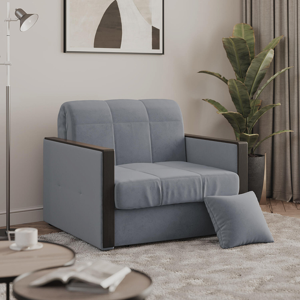 Кресло-кровать «Бристоль» подойдет ценителям стильной и функциональной мебели. Модель оснащена накладками на подлокотниках, на которые удобно положить ТВ-пульт или смартфон. Благодаря механизму трансформации «Аккордеон» модель легко превращается в полноценную одноместную кровать. Пропорциональные формы, плавные линии декоративного канта подчеркивают лаконичный дизайн, поэтому диван подойдет для любого современного интерьера.