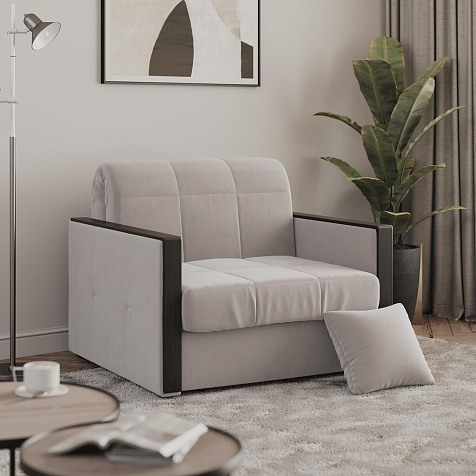 Кресло-кровать «Бристоль» подойдет ценителям стильной и функциональной мебели. Модель оснащена накладками на подлокотниках, на которые удобно положить ТВ-пульт или смартфон. Благодаря механизму трансформации «Аккордеон» модель легко превращается в полноценную одноместную кровать. Пропорциональные формы, плавные линии декоративного канта подчеркивают лаконичный дизайн, поэтому диван подойдет для любого современного интерьера.