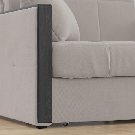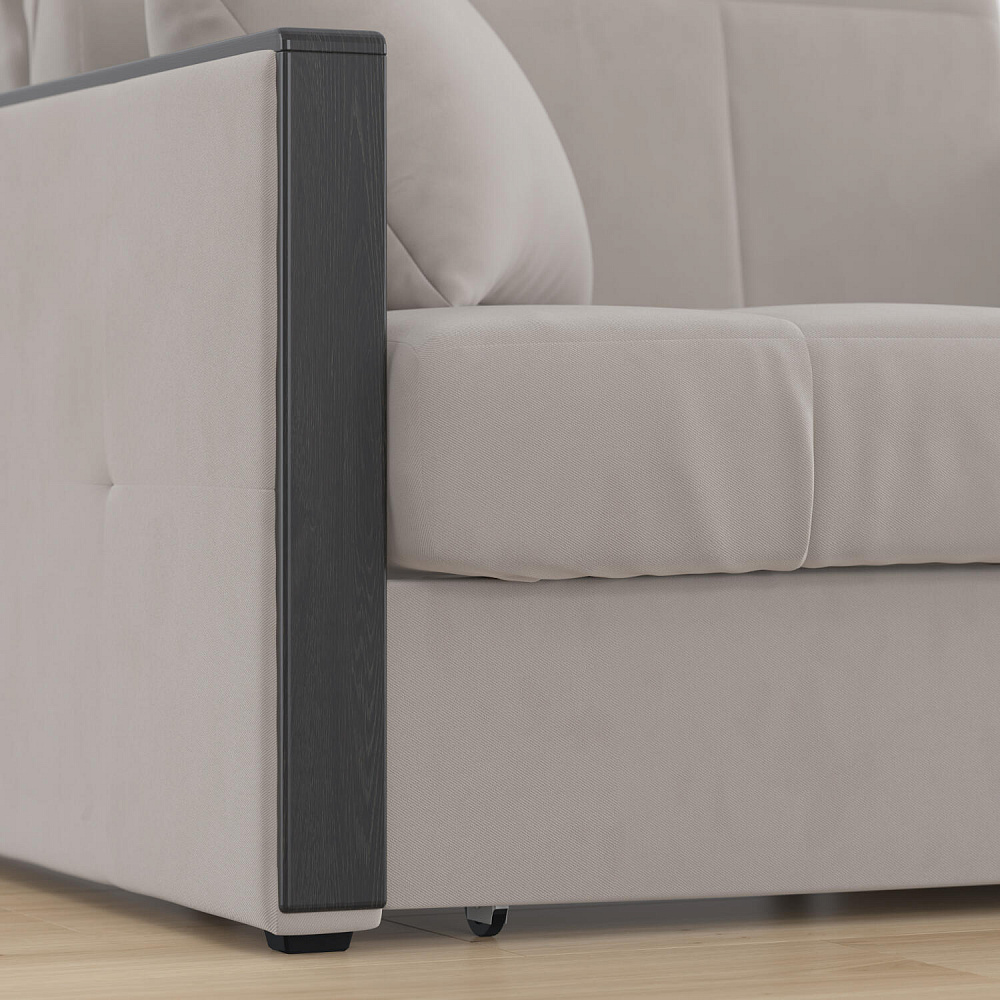 Обивка из велюра с влагоотталкивающей пропиткой. Плотная и мягкая ткань отличается ненавязчивым узором в виде мелких диагональных линий.
