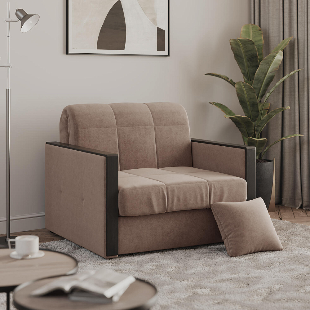 Кресло-кровать «Бристоль» подойдет ценителям стильной и функциональной мебели. Модель оснащена накладками на подлокотниках, на которые удобно положить ТВ-пульт или смартфон. Благодаря механизму трансформации «Аккордеон» модель легко превращается в полноценную одноместную кровать. Пропорциональные формы, плавные линии декоративного канта подчеркивают лаконичный дизайн, поэтому диван подойдет для любого современного интерьера.