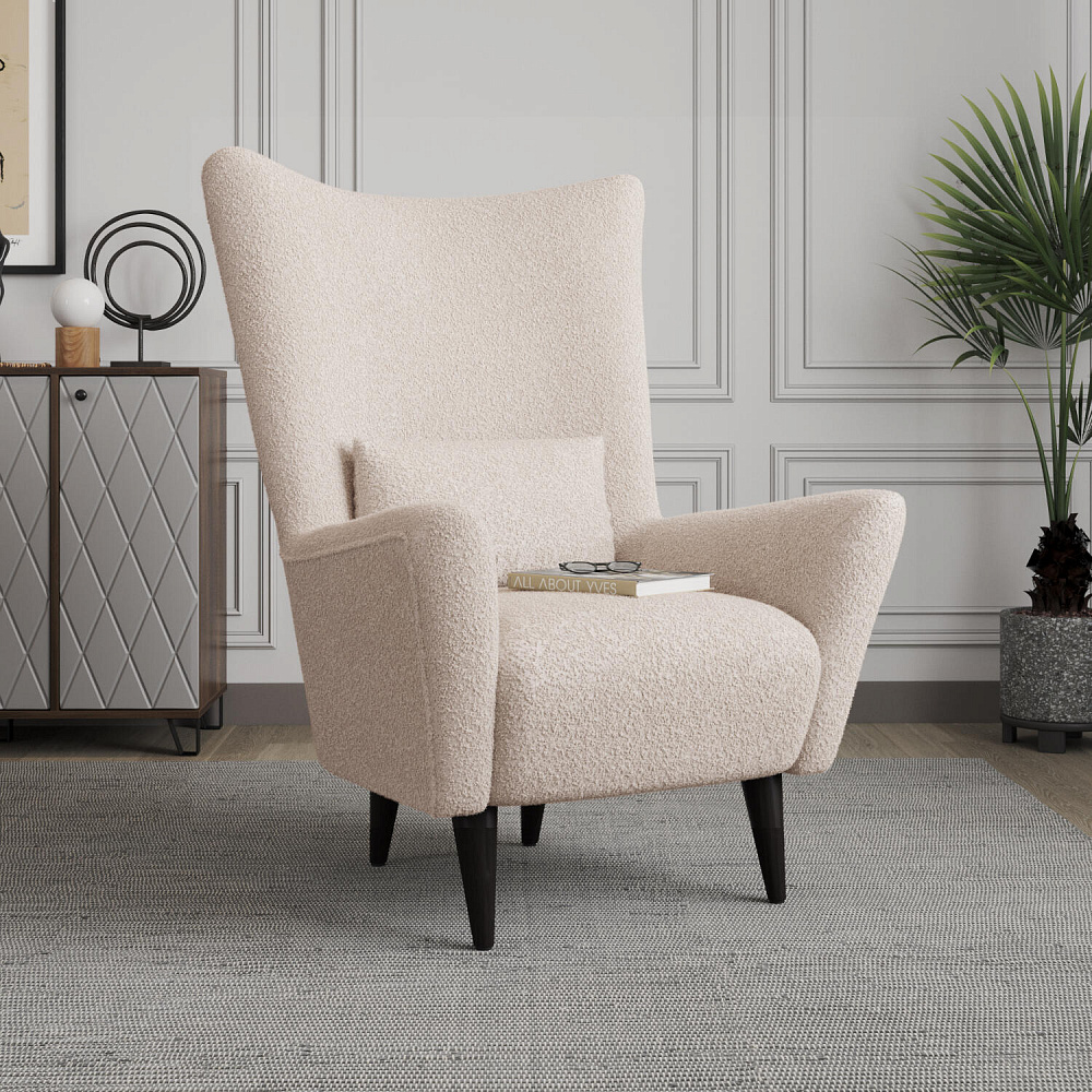 Удобное кресло «Дублин» с декоративной подушкой гармонично сочетается с особенностями любого интерьера. Дизайн модели — это единство плавных форм и линий, лаконичности и изысканности. Особый шарм обеспечивается за счёт вогнутой формы спинки и элегантных подлокотников, обеспечивающих высокий комфорт во время посадки. Благодаря высоким ножкам из натурального дерева, кресло словно парит в воздухе, в некоторой степени облегчая интерьер гостиной или спальни.