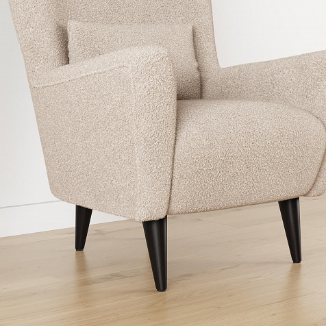 Обивка: букле Soul (100% полиэстер), плотность ткани — 570 г/м2, устойчивость к истиранию — 53 000 циклов по тесту Мартиндейла.