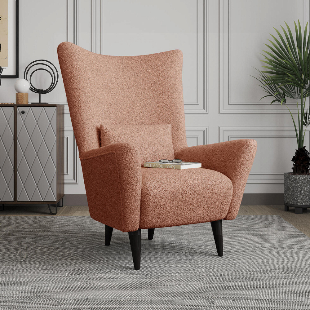 Удобное кресло «Дублин» с декоративной подушкой гармонично сочетается с особенностями любого интерьера. Дизайн модели — это единство плавных форм и линий, лаконичности и изысканности. Особый шарм обеспечивается за счёт вогнутой формы спинки и элегантных подлокотников, обеспечивающих высокий комфорт во время посадки. Благодаря высоким ножкам из натурального дерева, кресло словно парит в воздухе, в некоторой степени облегчая интерьер гостиной или спальни.